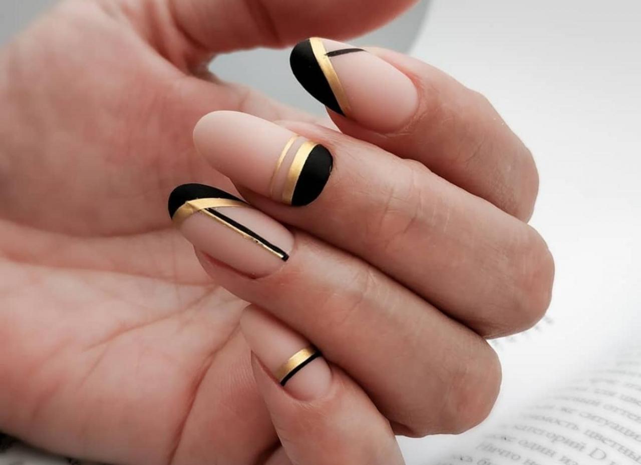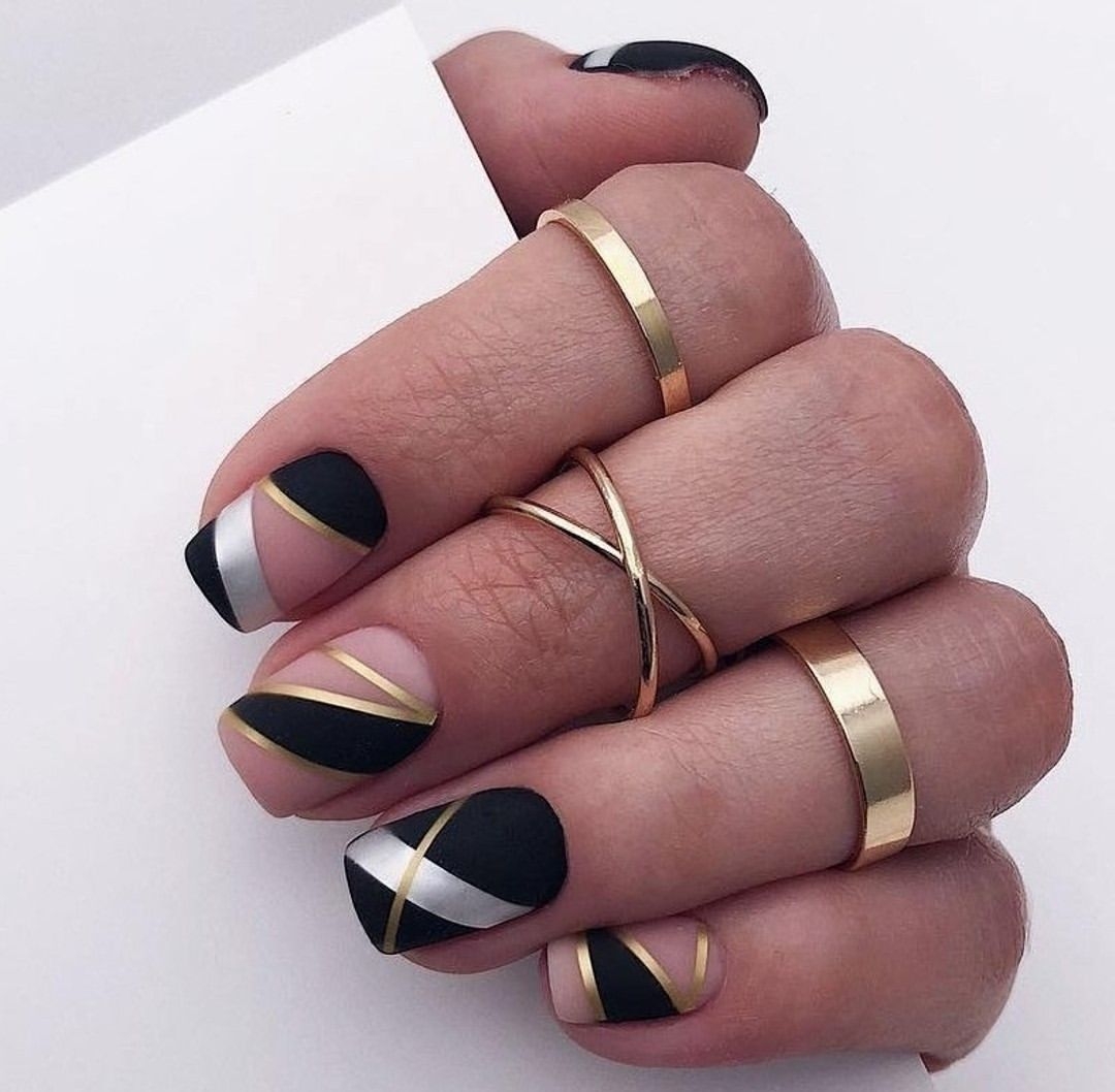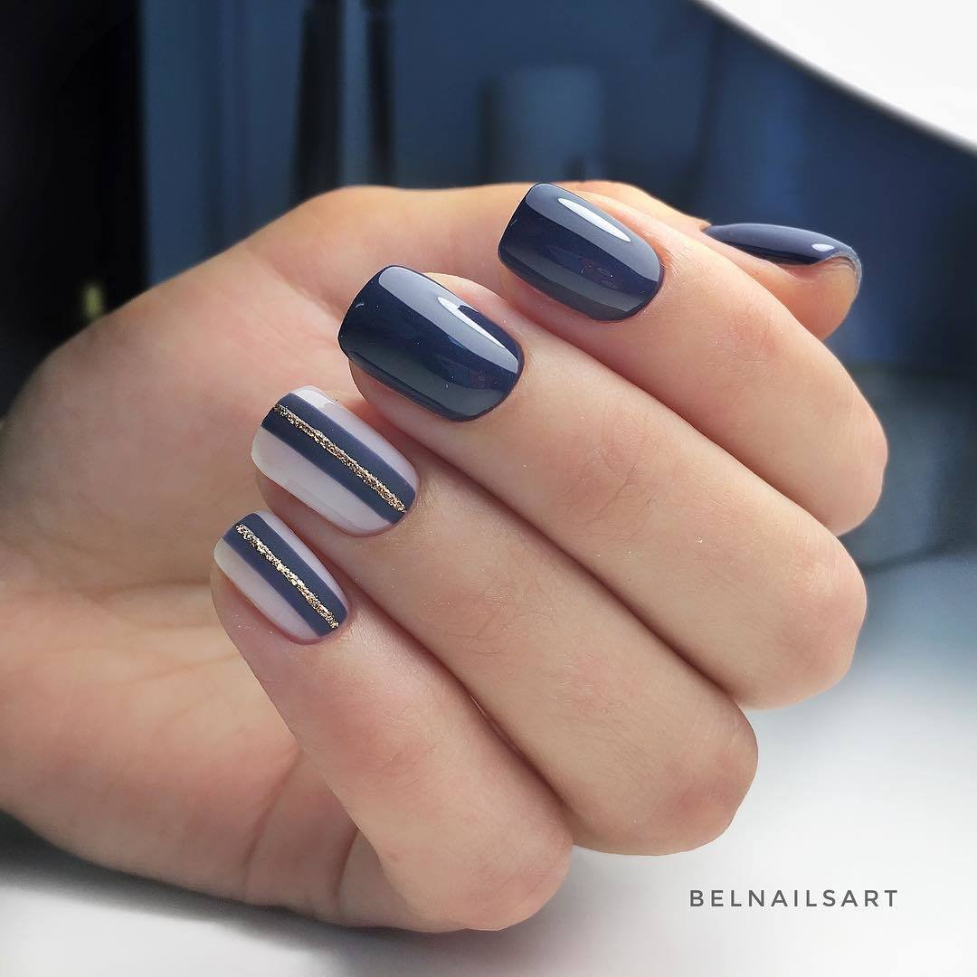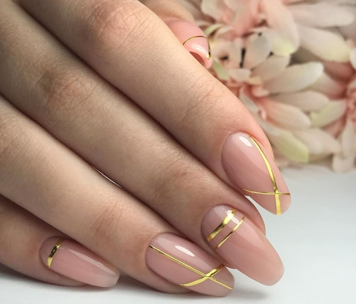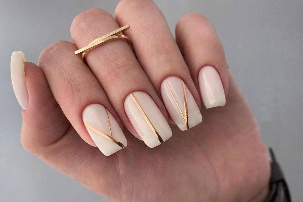 Маникюр с золотыми полосками