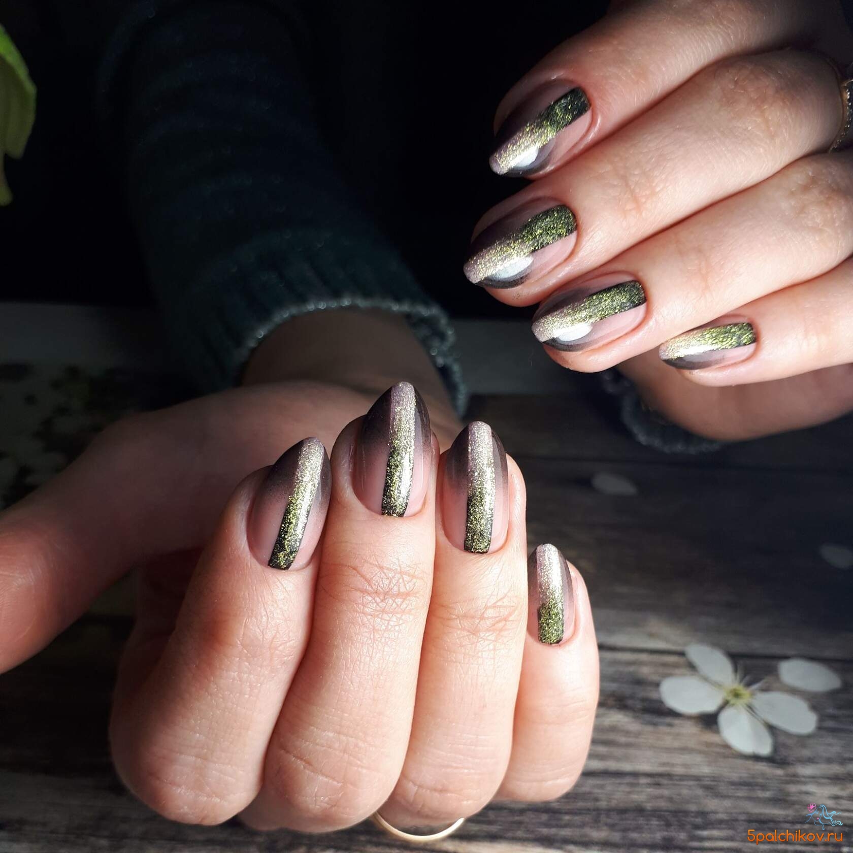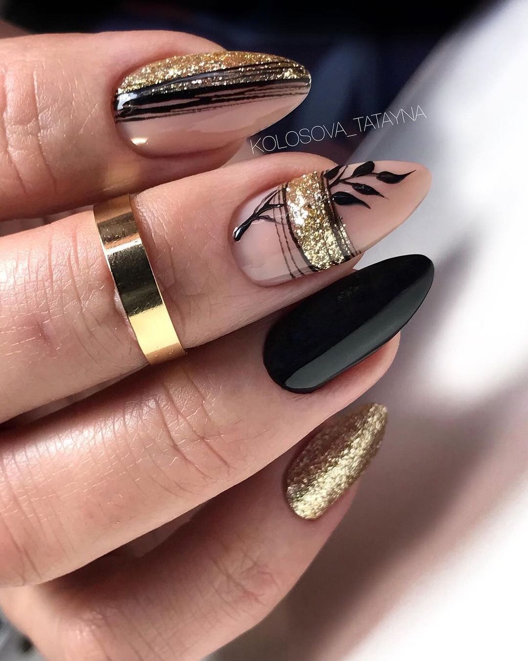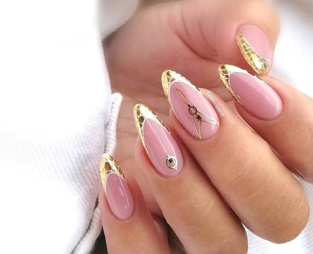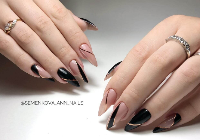 Маникюр с золотыми полосками