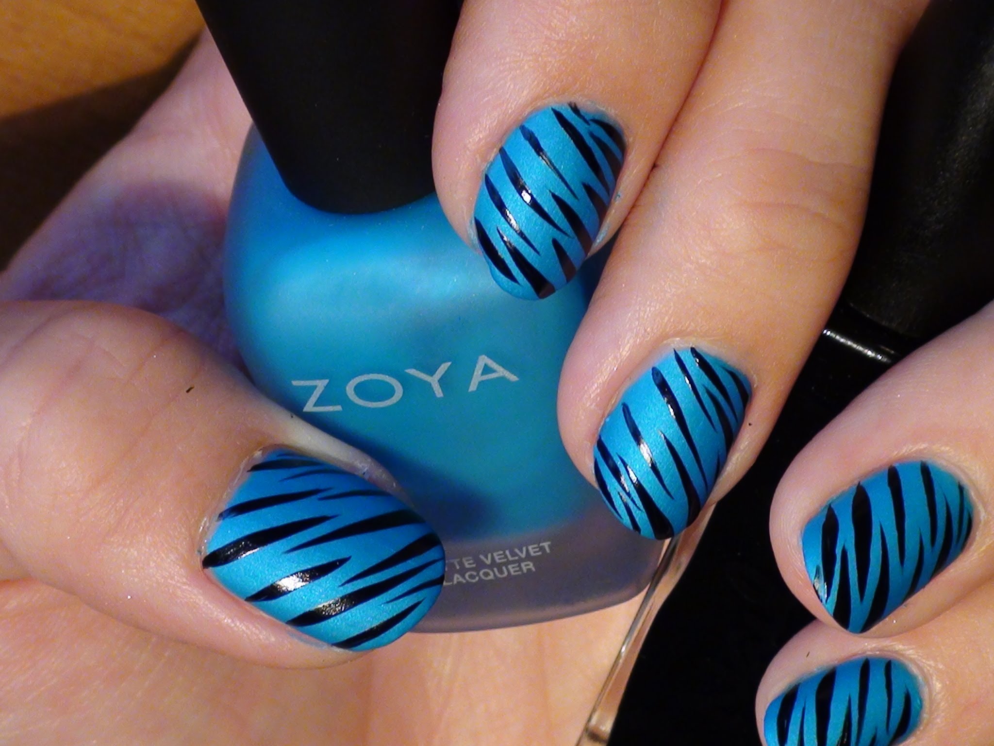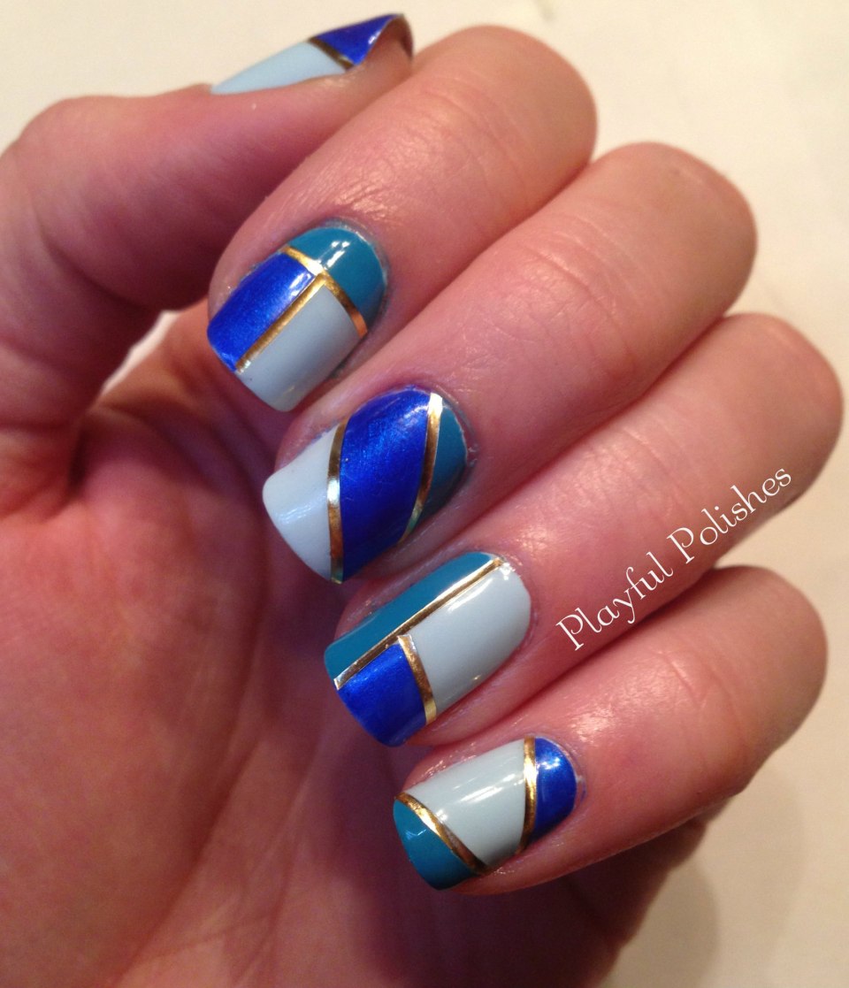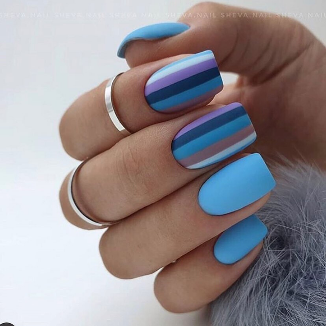 Голубой и синий маникюр с черными полосками