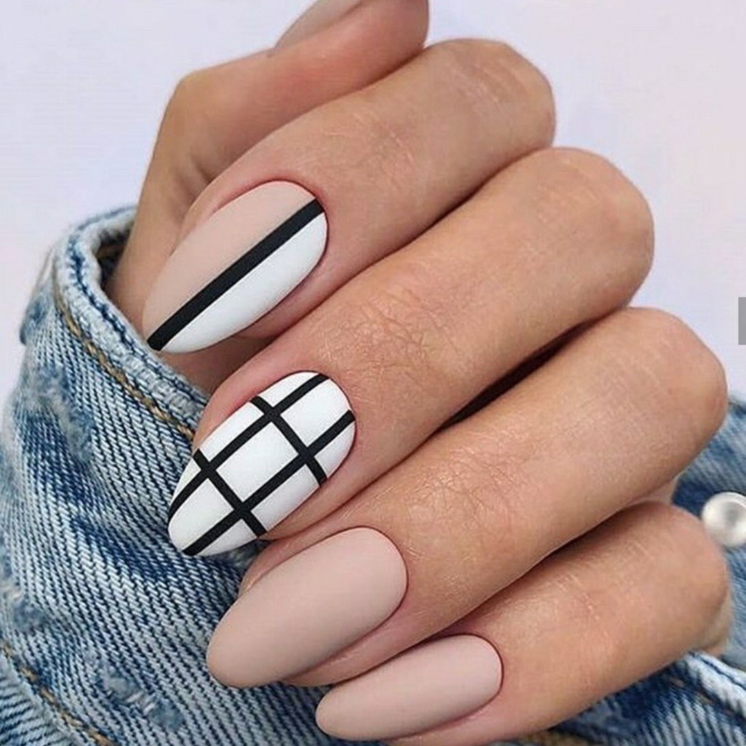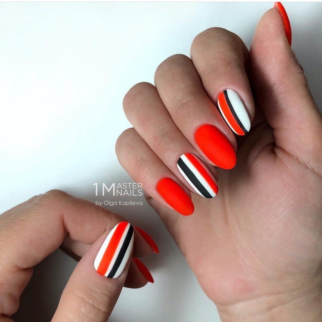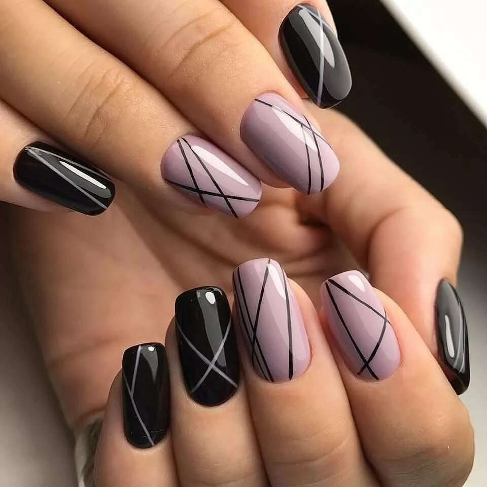 Маникюр полоски на разную форму и длину ногтей