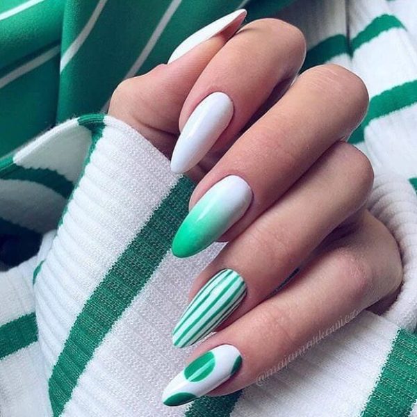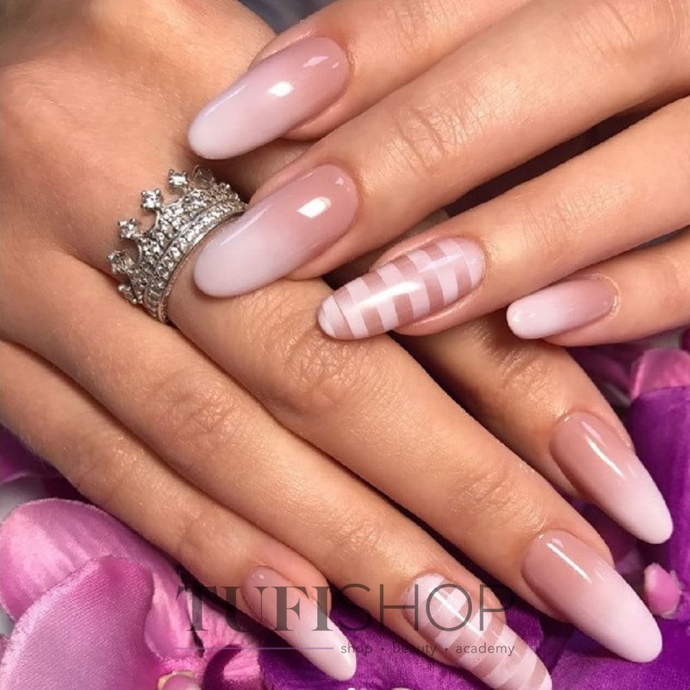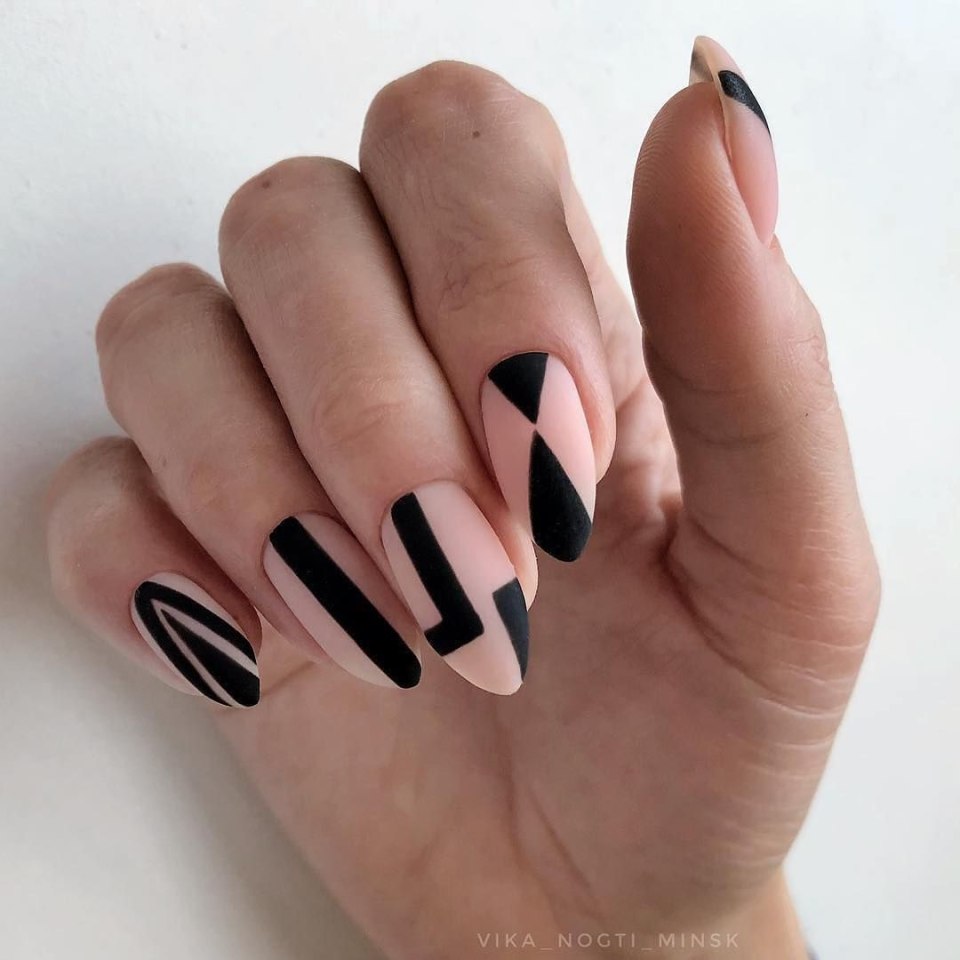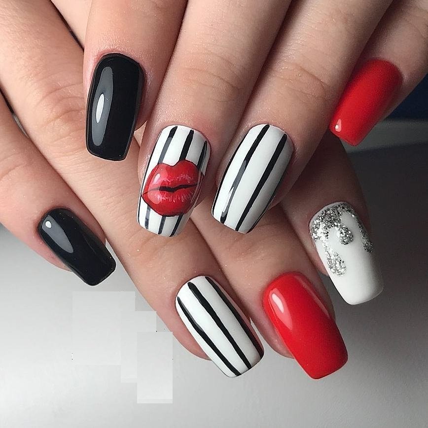 Маникюр полоски на разную форму и длину ногтей