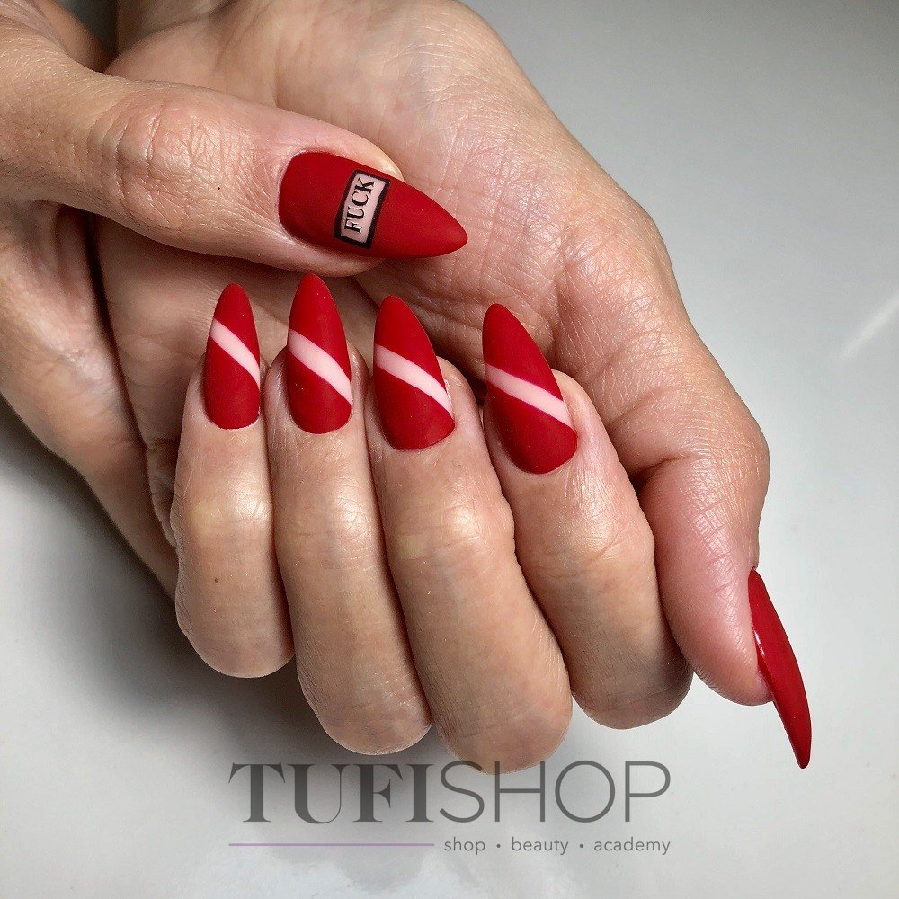 - Красный маникюр с полосками