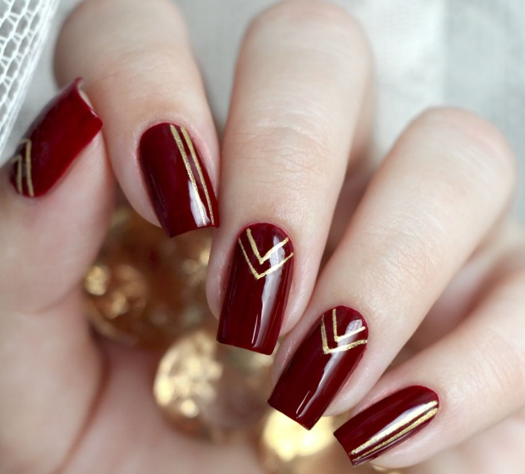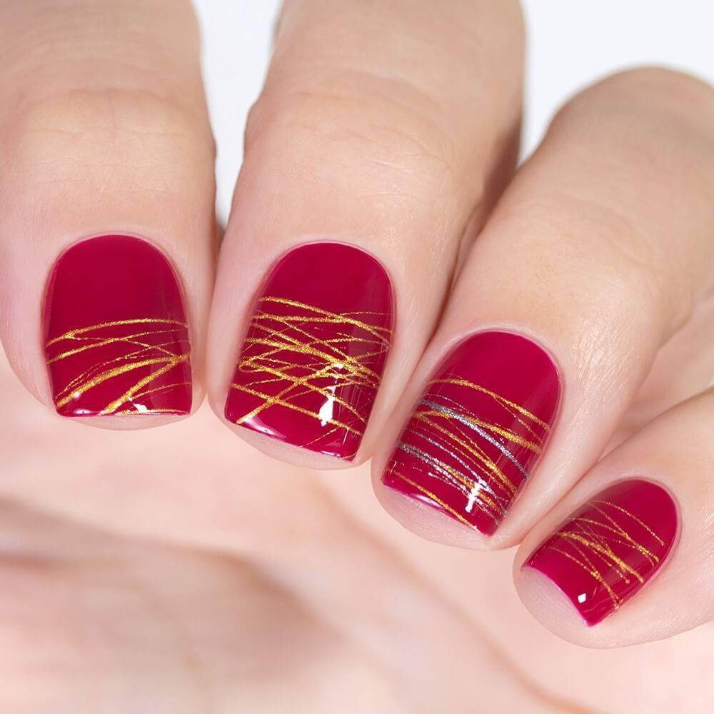 Красные оттенки — это страсть, глубина и самодостаточность. Вся палитра красного позволяет сделать заметный и яркий маникюр. Но многим модницам и этого мало. Хочется акцентов. И здесь многие попадают в ловушку, когда лучшее — враг хорошего. Многочисленные добавки из камней, блесток делают дизайн тяжелым и пошлым. Полоски — вот тот вариант декора, который позволит соблюсти меру.