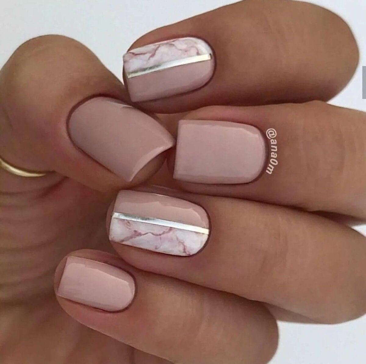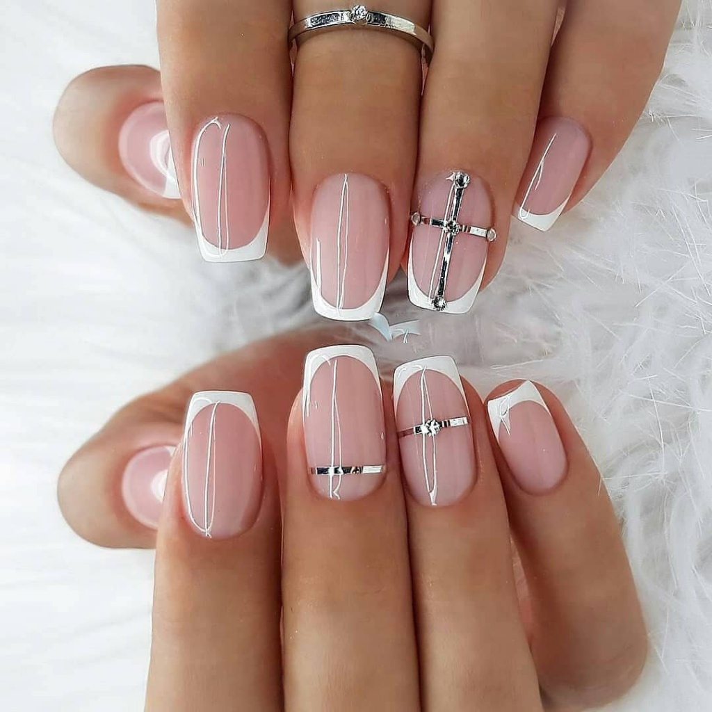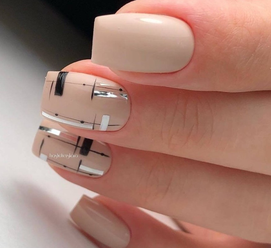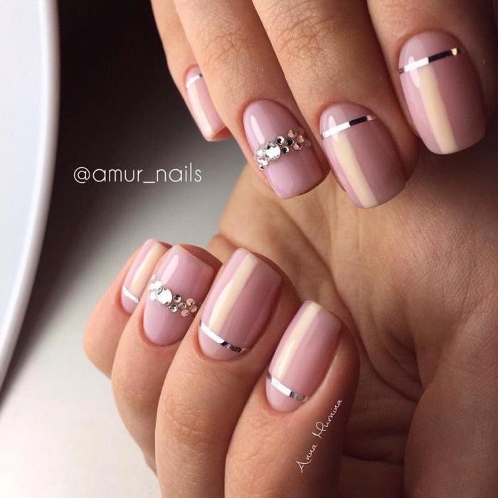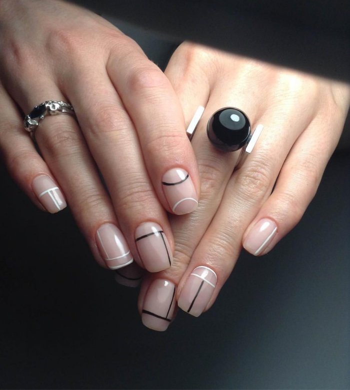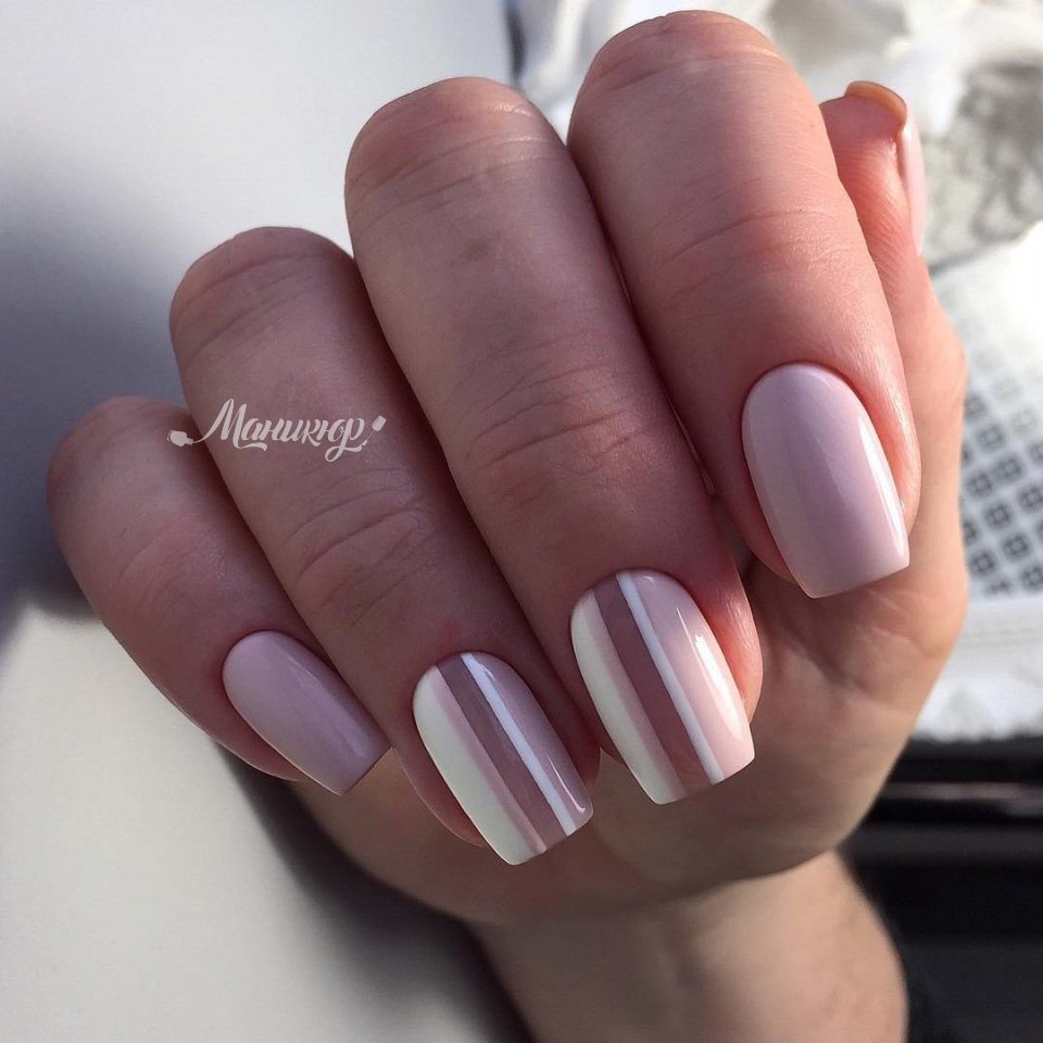 - Нюдовый маникюр с полосками