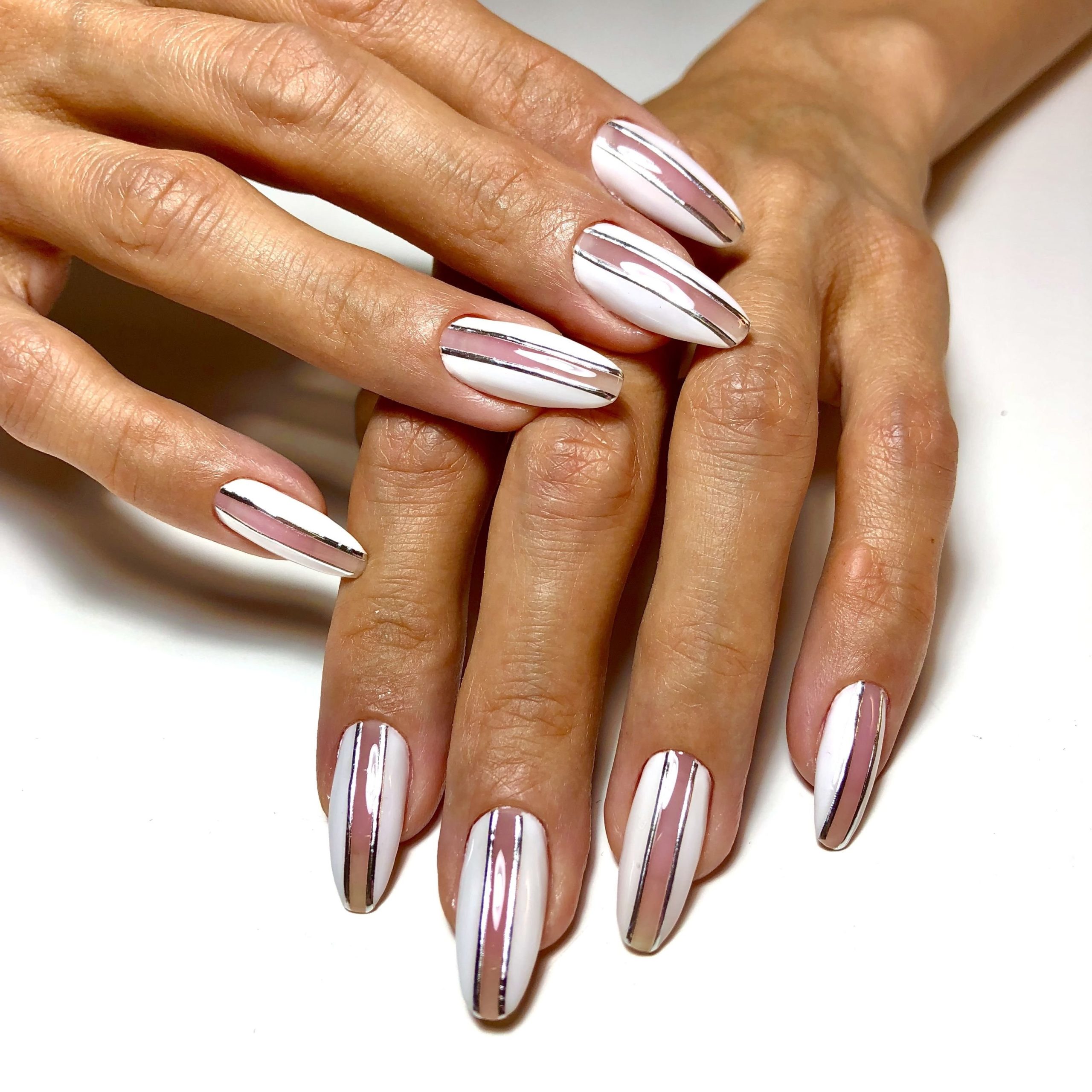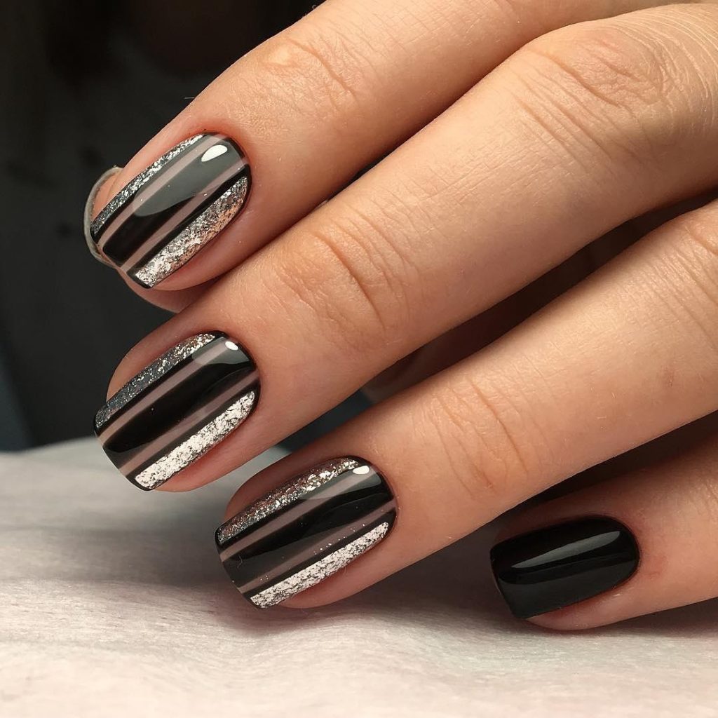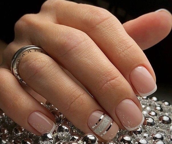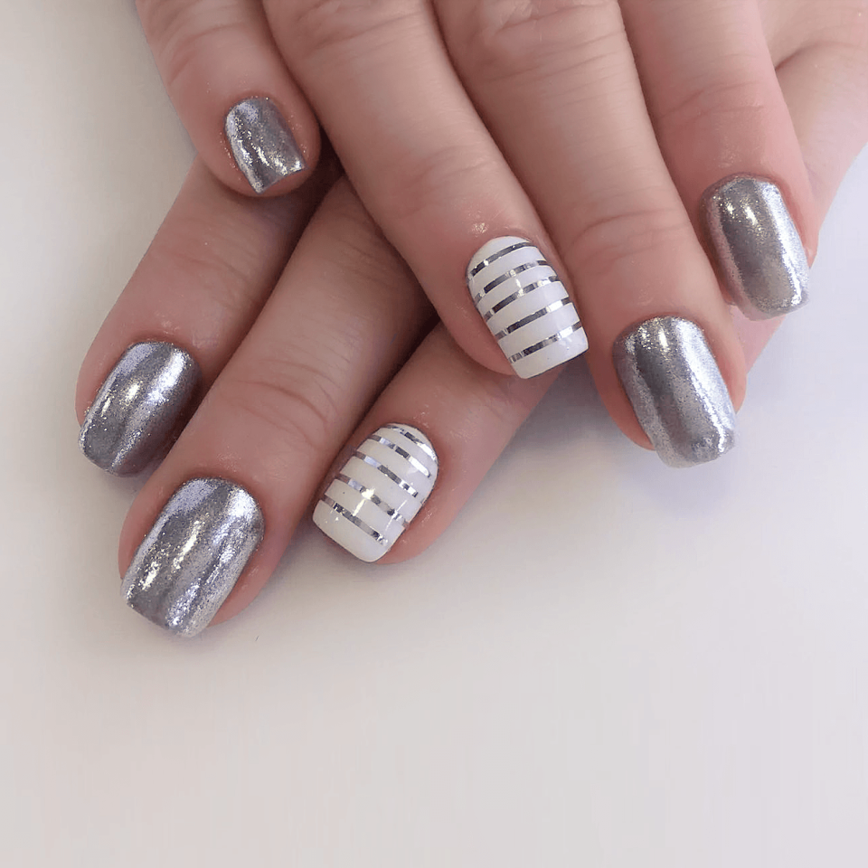 Маникюр с серебряными полосками