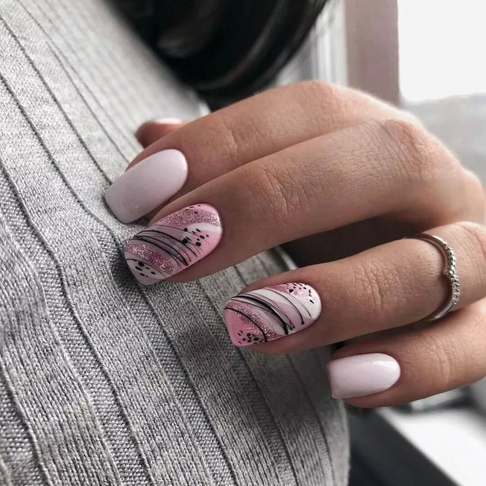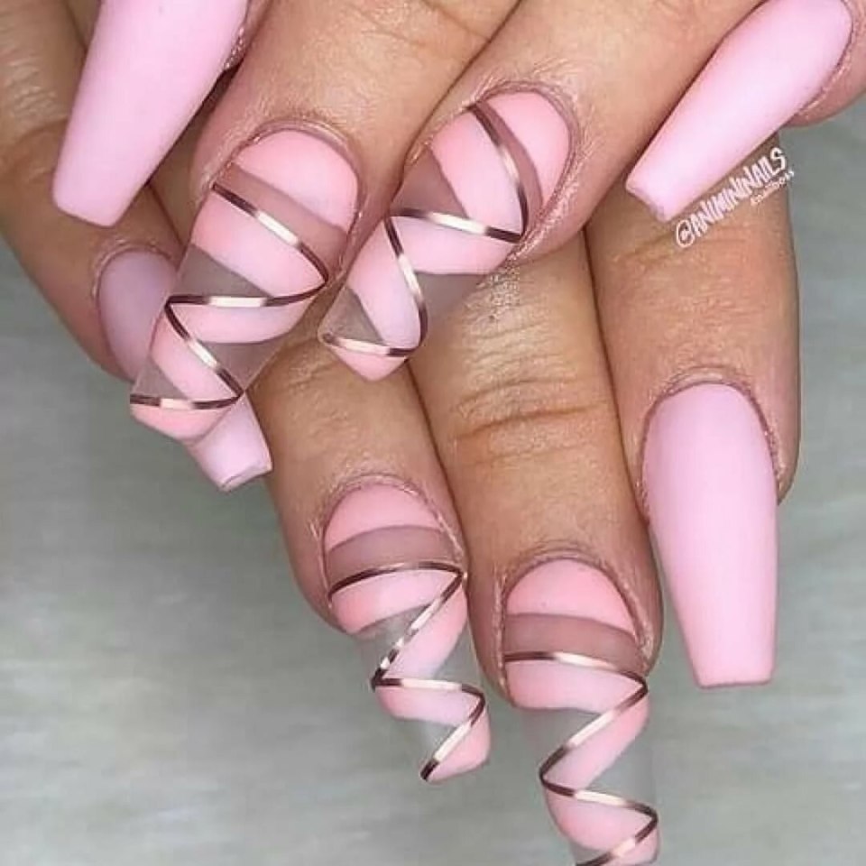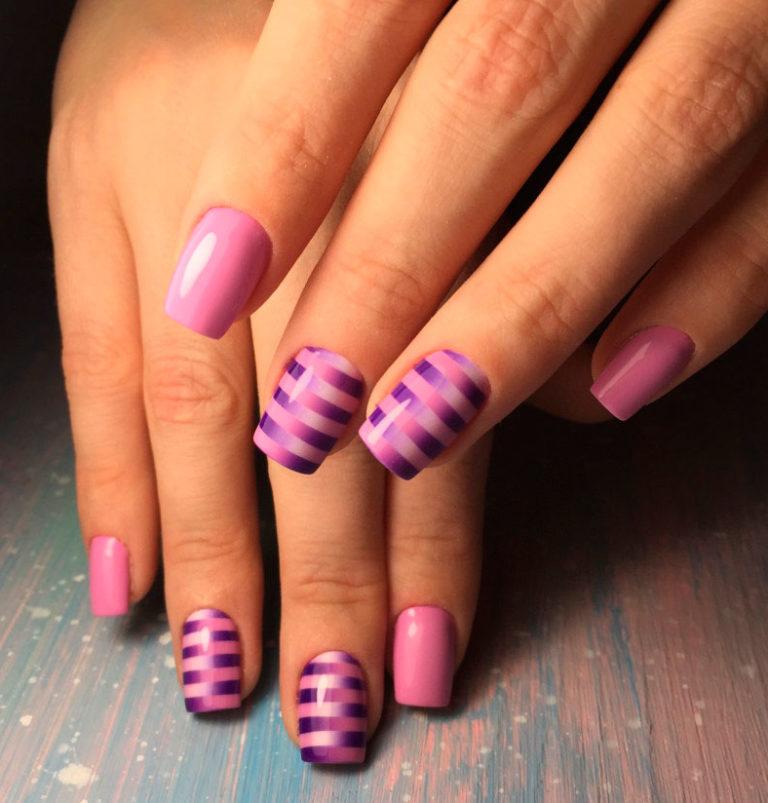 Розовый маникюр с полосками
