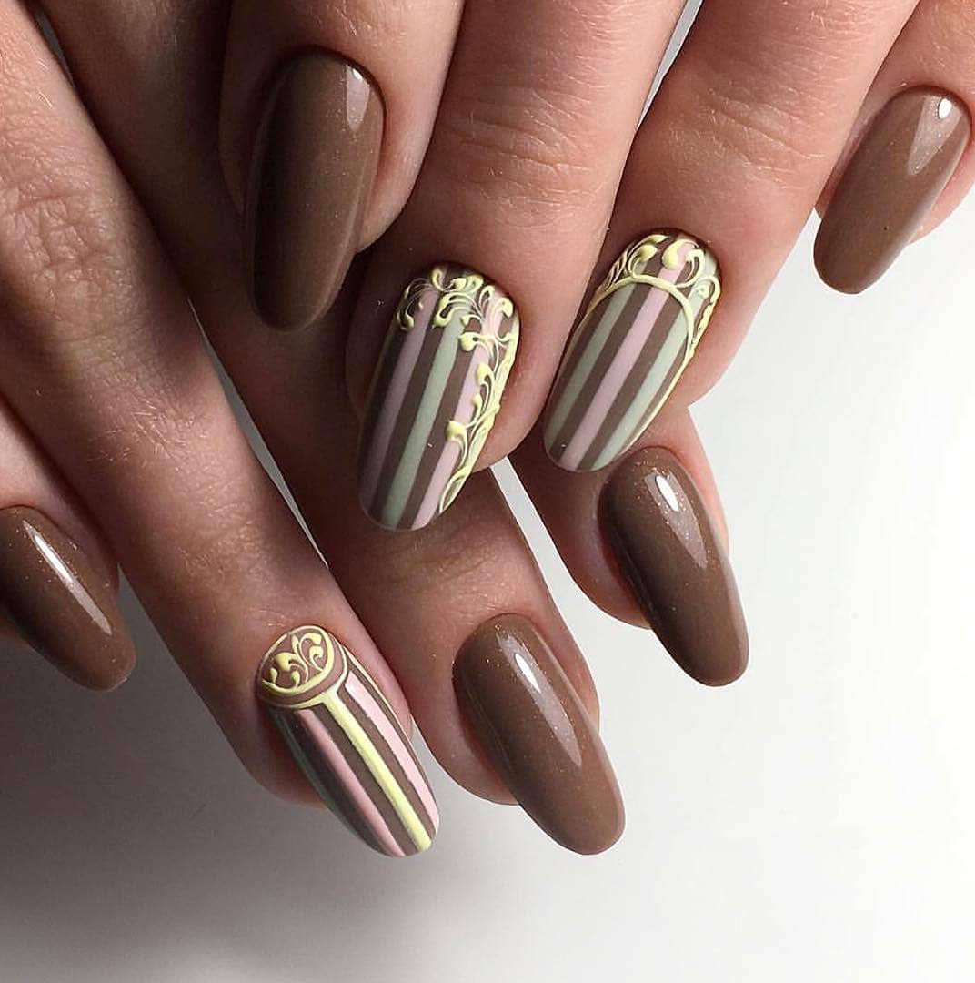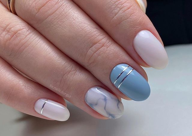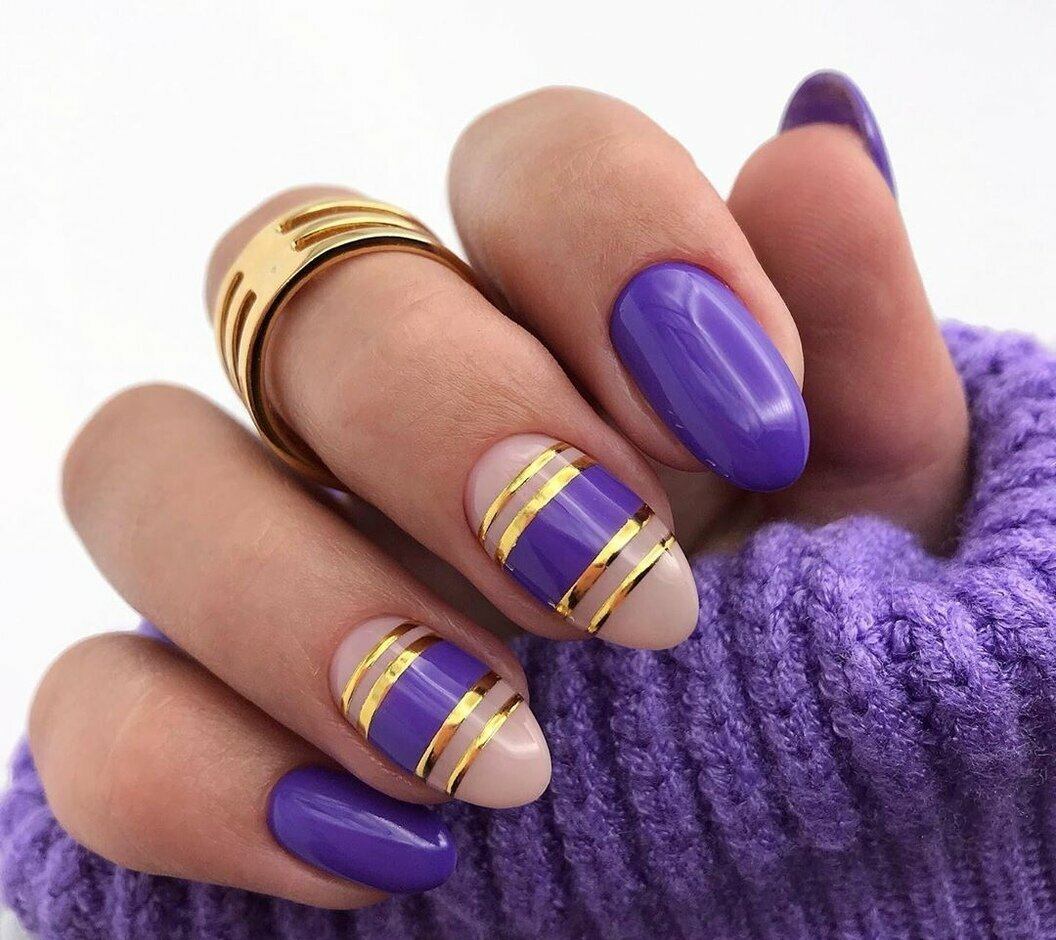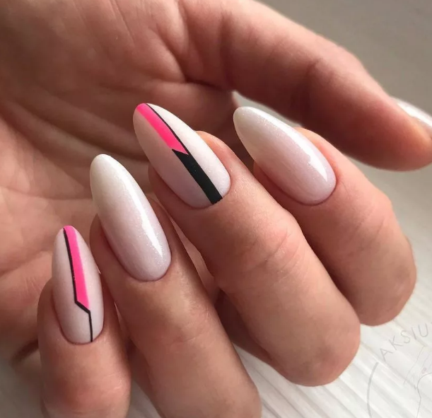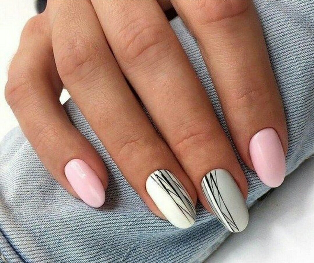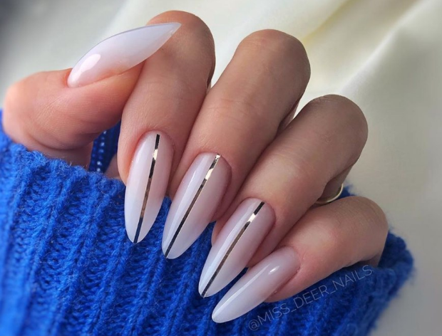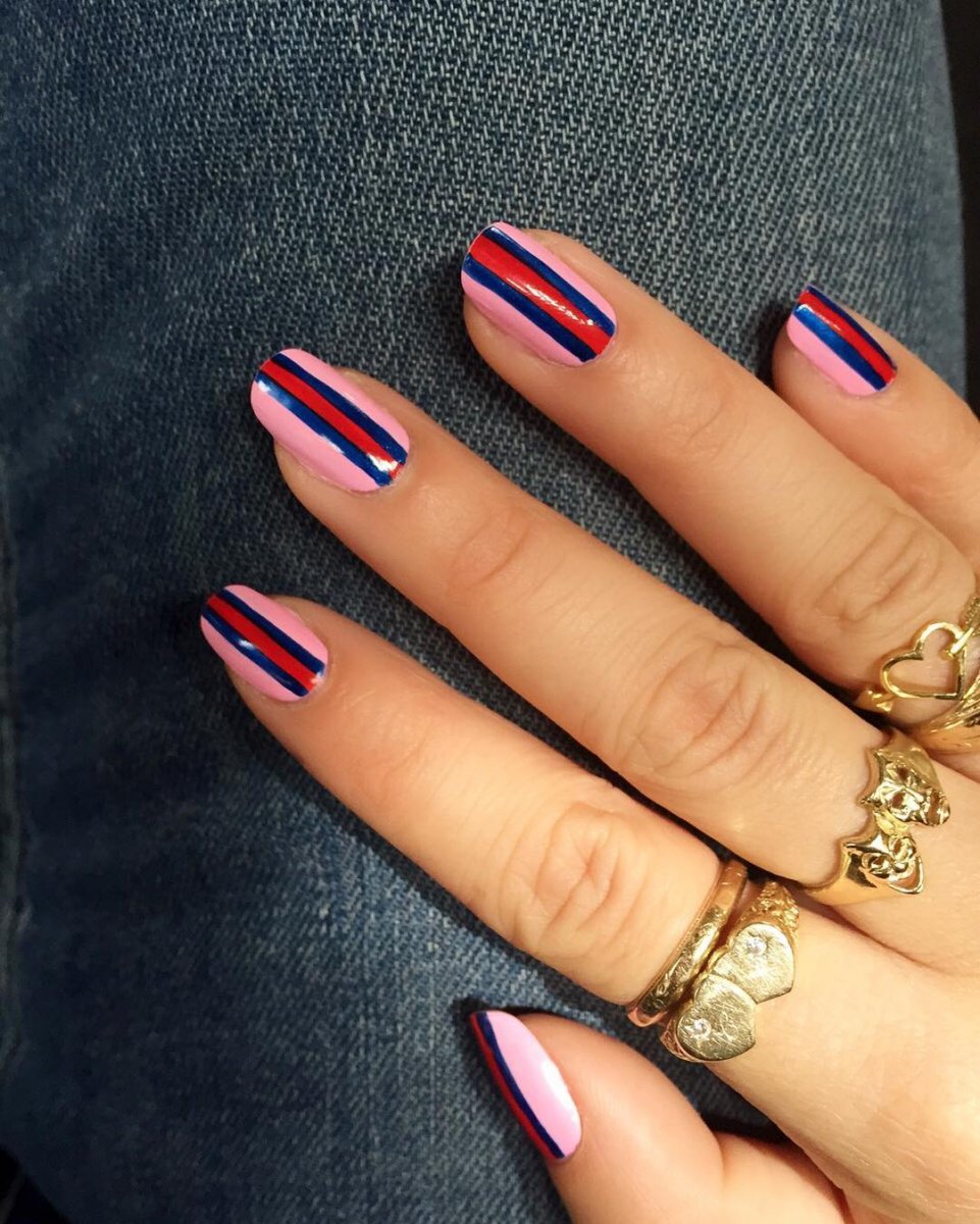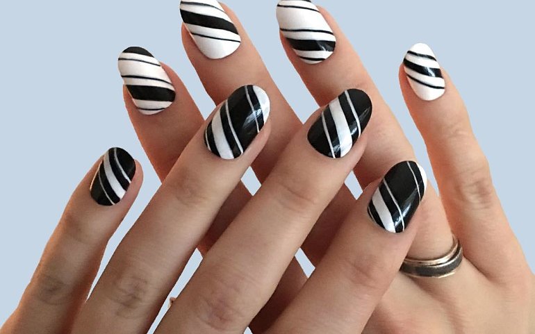 Маникюр с полосками на овальные ногти