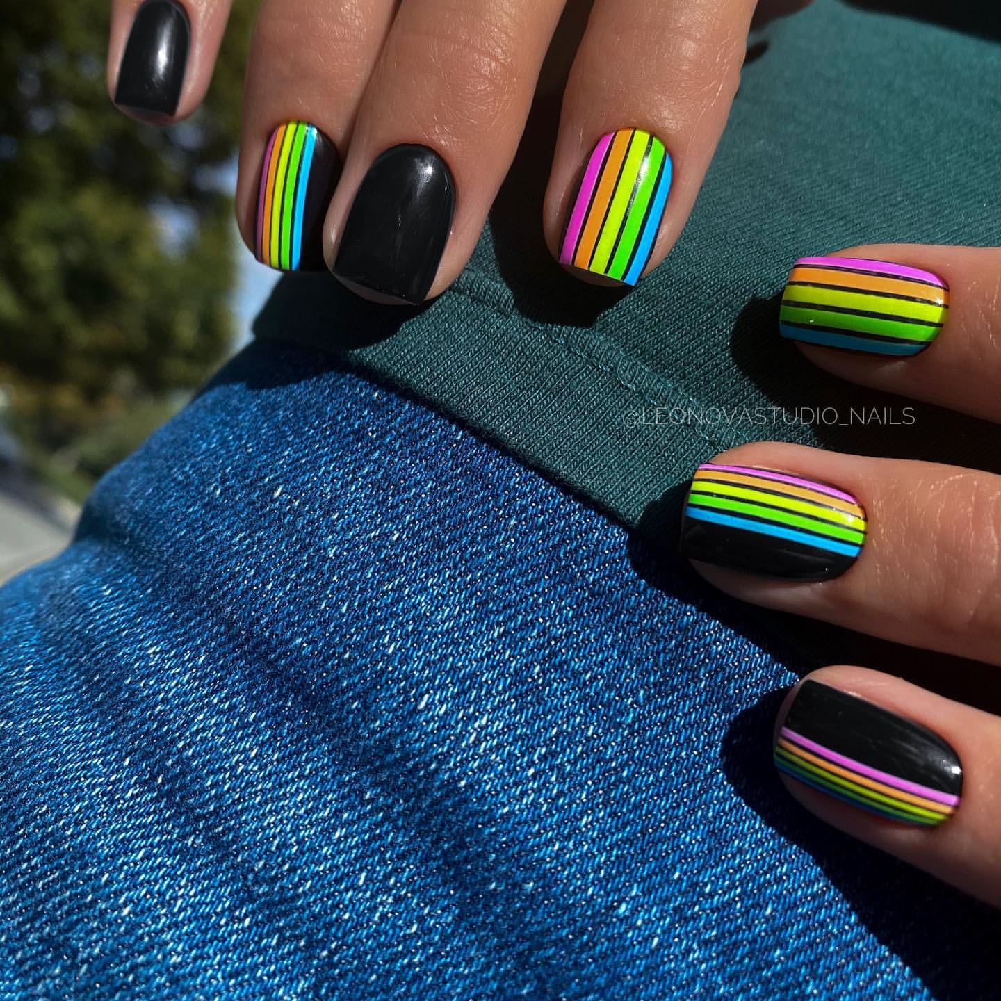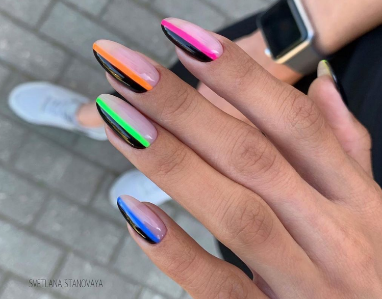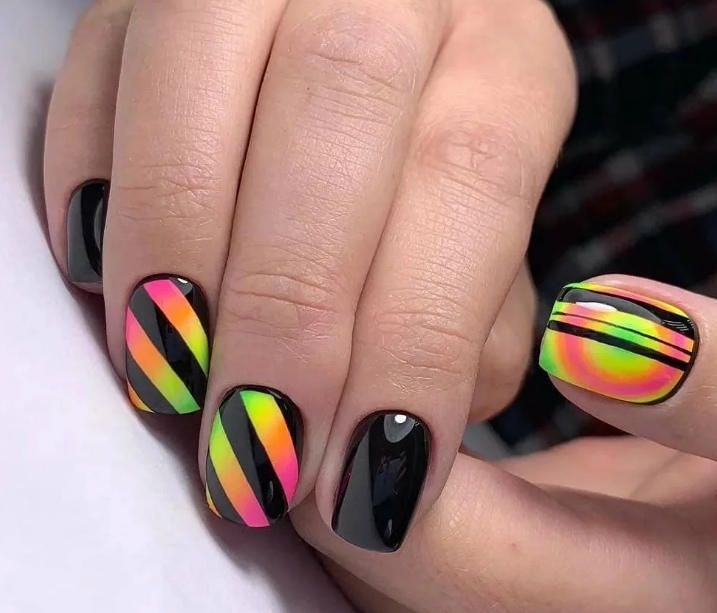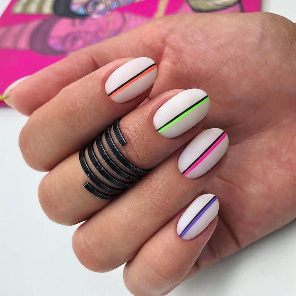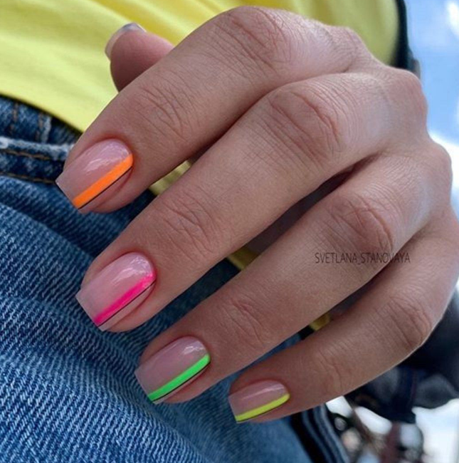 Маникюр с неоновыми полосками