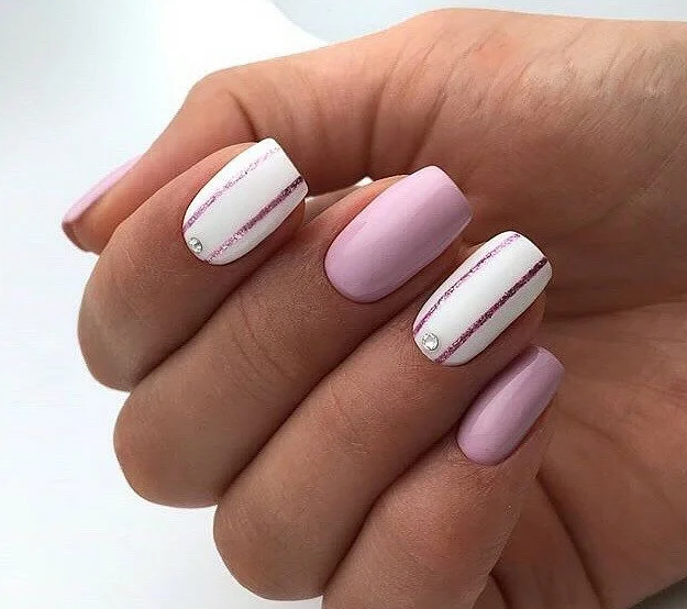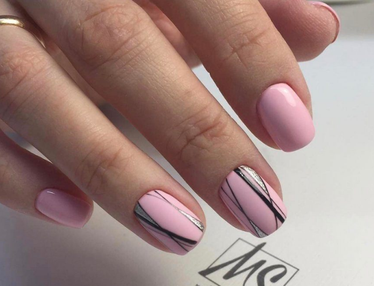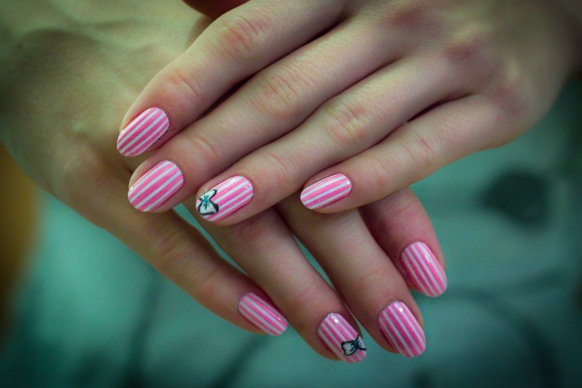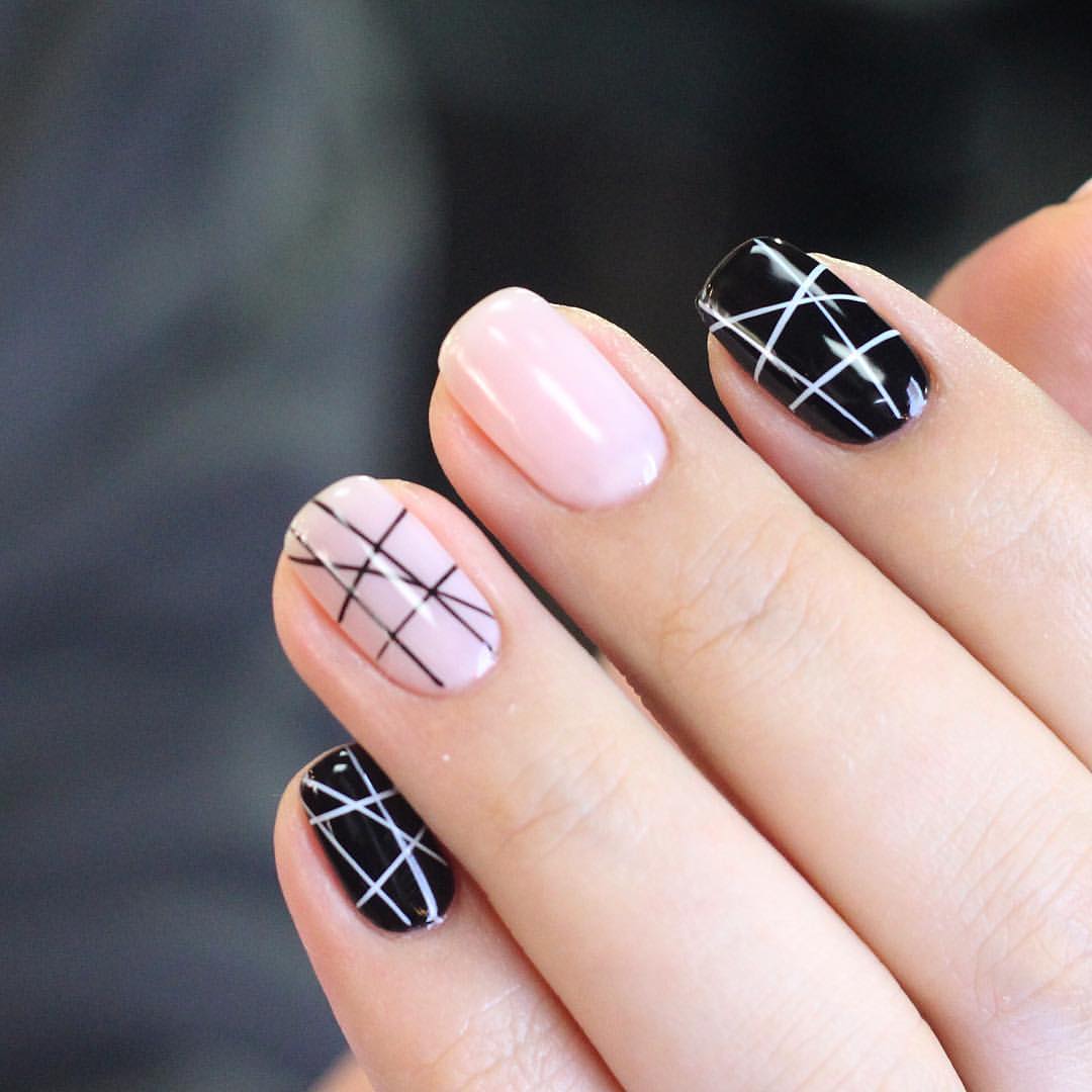 Маникюр с полосками на короткие ногти