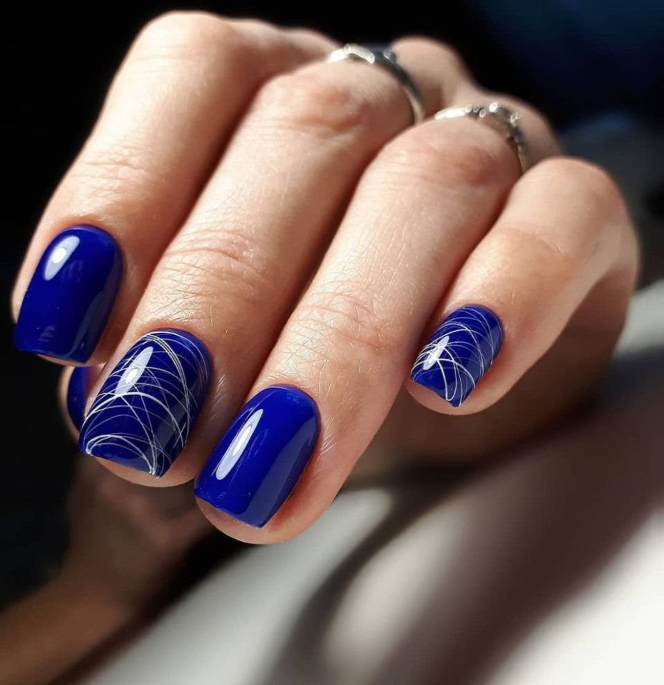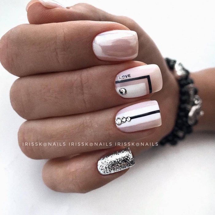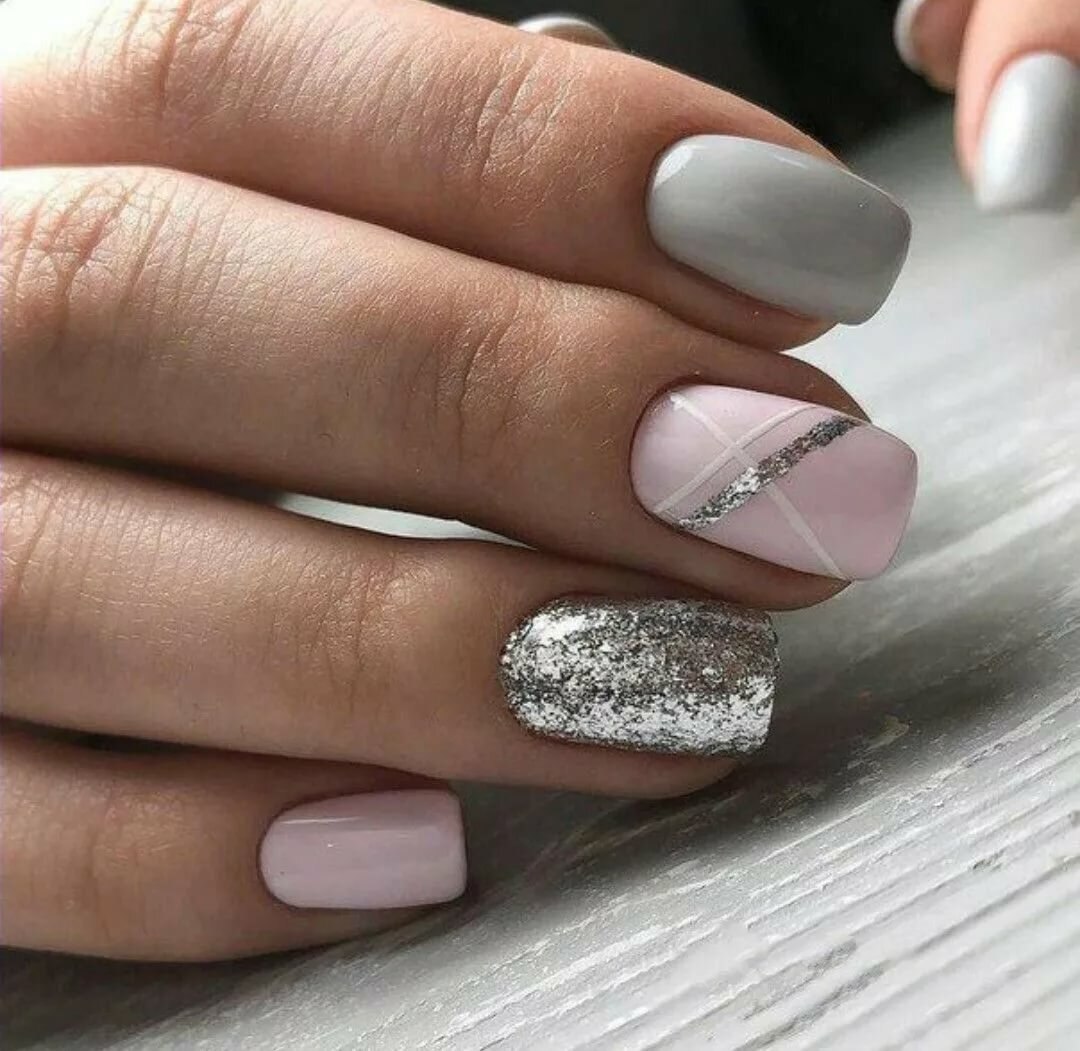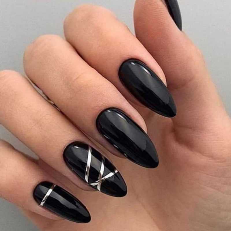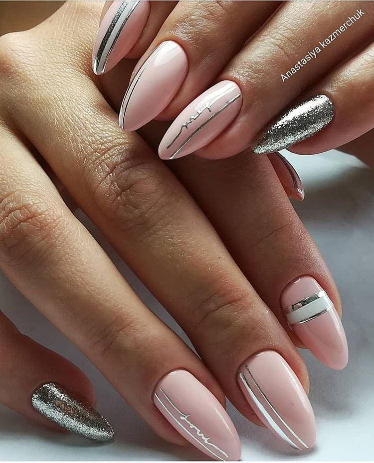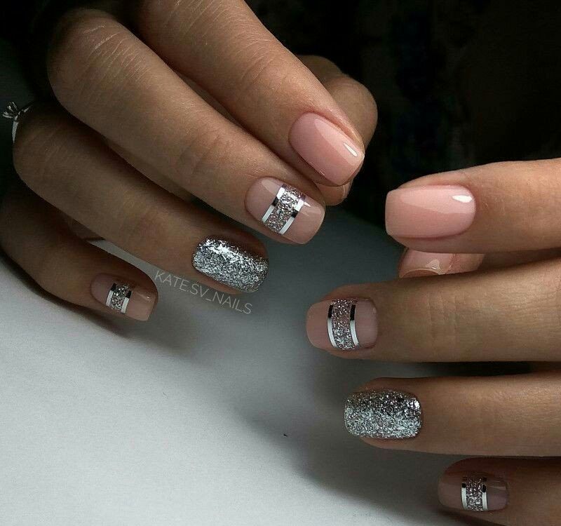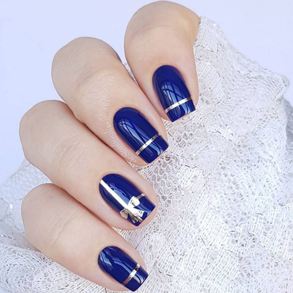 - Маникюр с серебряными полосками