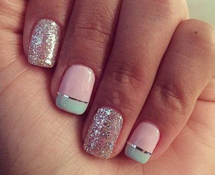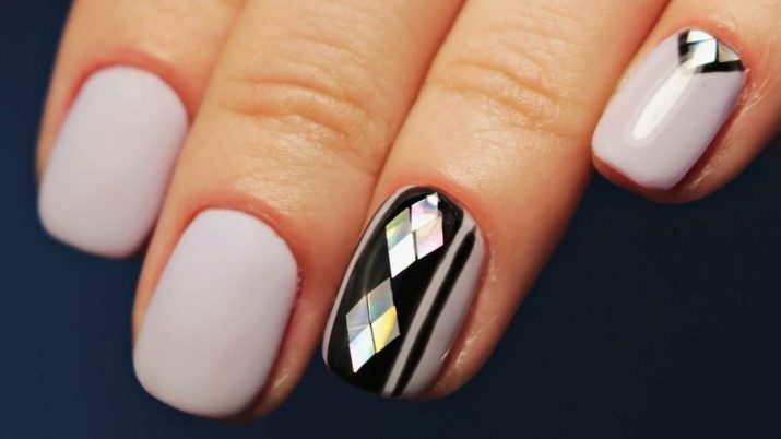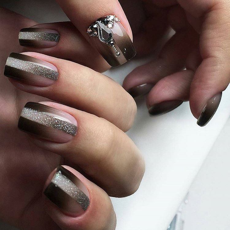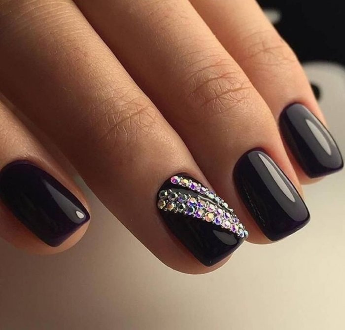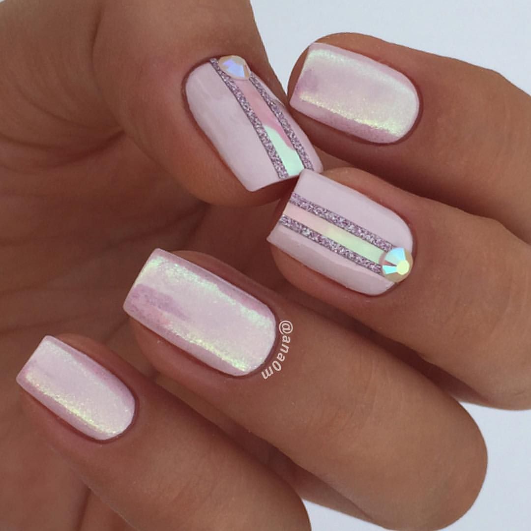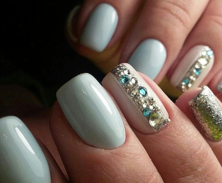 Совет: если выбрали блестки, сделайте акцент на одном ногте. А остальные оформите в выбранном стиле. При использовании страз главное умеренность. Добавляйте по одной штуке, делая минималистичный акцент. Этого будет достаточно.