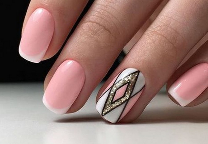 Короткая длина — это дань моде или строгое следование требованиям дресс кода компании. Но всем модницам хочется сделать пальчики более длинными, а руки изящными. Это значит, что нужно выбирать вертикальные полоски или ромбики. С их помощью ноготь визуально вытягивается при сохранении исходной длины.