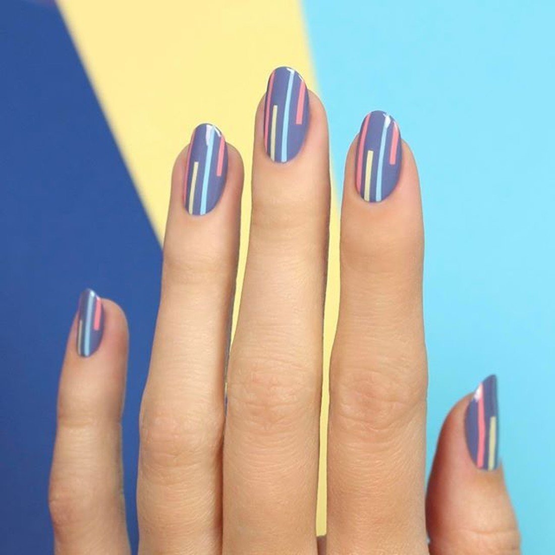 - Маникюр с полосками на овальные ногти