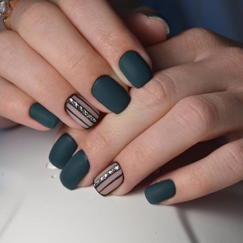 Матовая текстура делает любой маникюр более стильным и дорогим. Полосатый дизайн не стал исключением. Вы можете сделать весь декор в матовом исполнении или поиграть с текстурами — база матовая, а полоски глянцевые или наоборот.