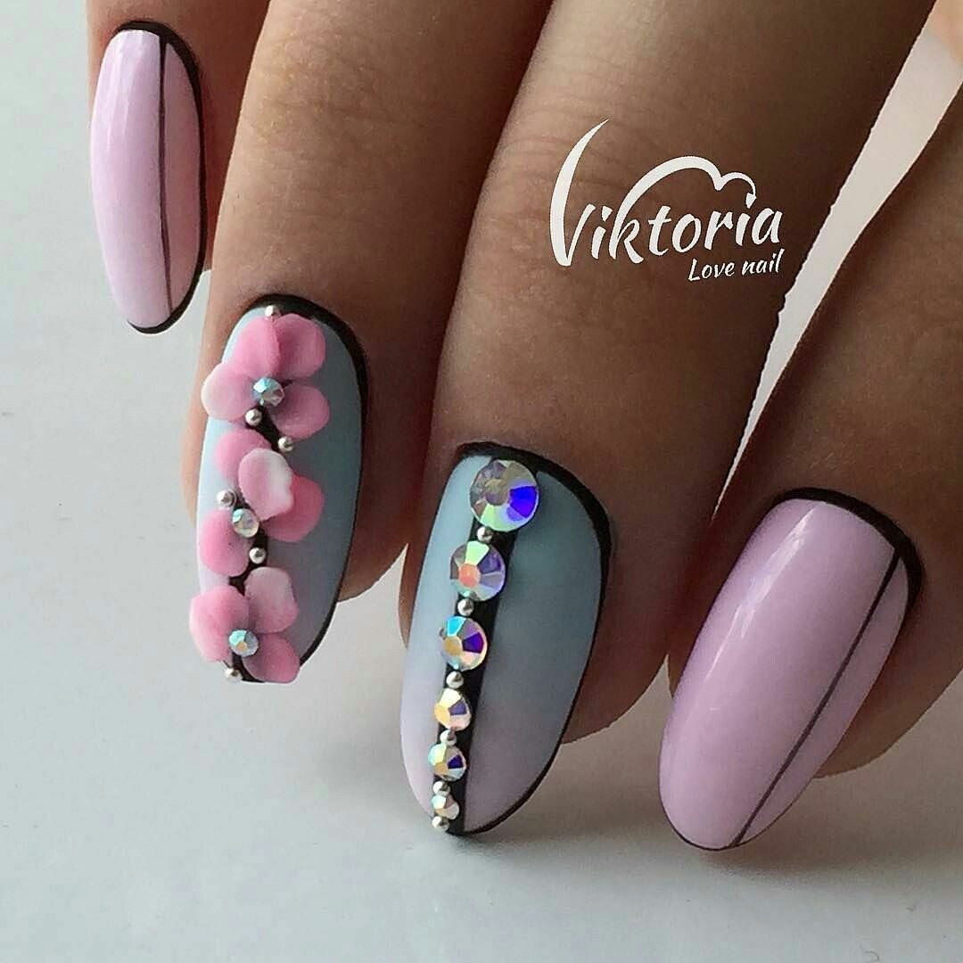 Стразы и блестки — универсальный декор. Он используется всегда, когда хочется добавить немного блеска. Но не стоит перегружать дизайн подобными деталями. Он может выглядеть тяжело и нелепо.