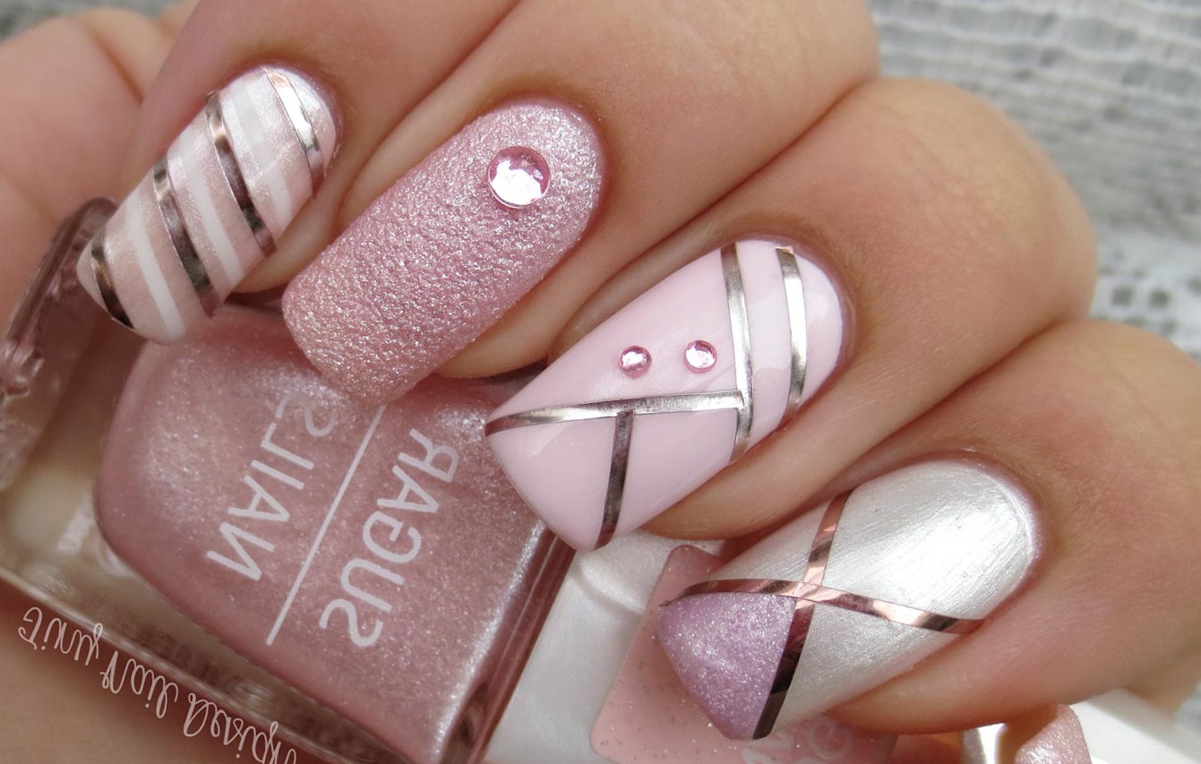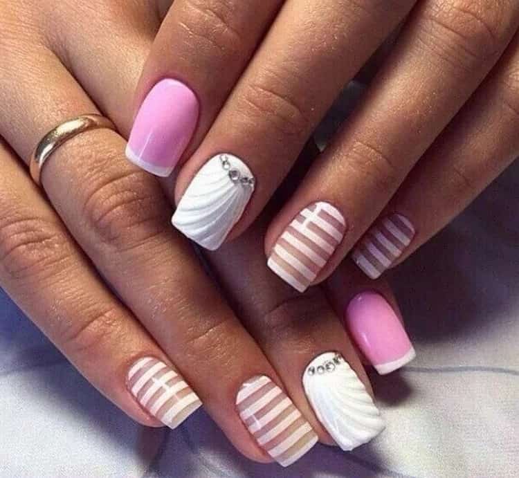 - Розовый маникюр с полосками