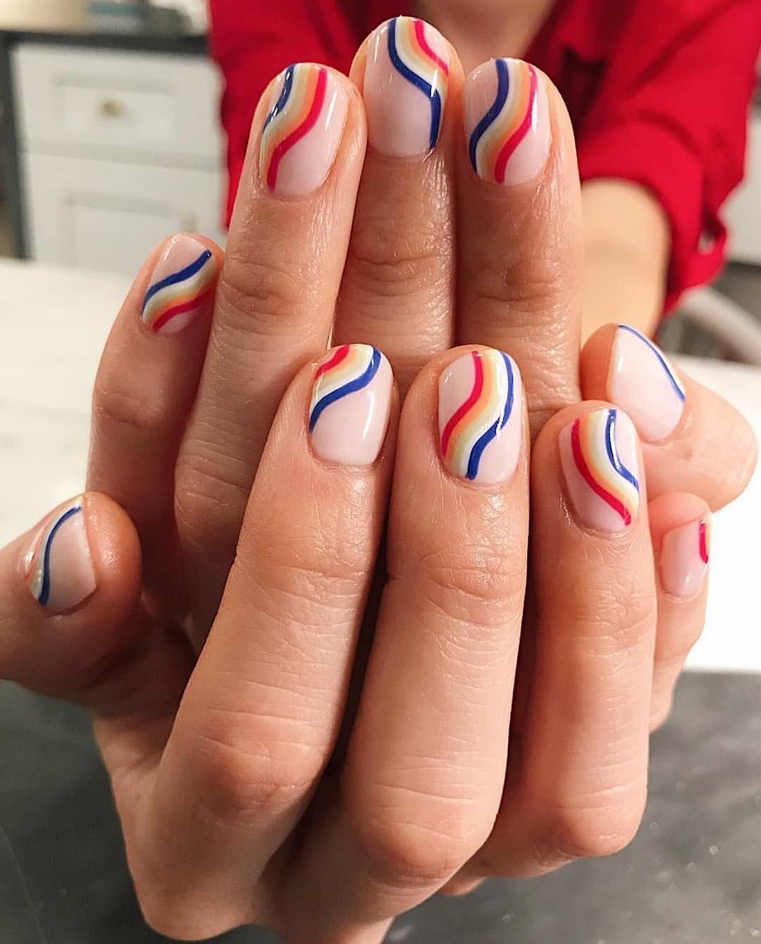 Волнистые полоски в маникюре
