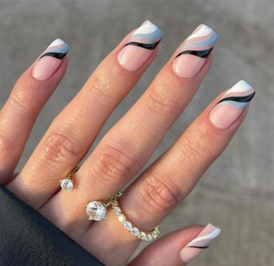- Волнистые полоски в маникюре