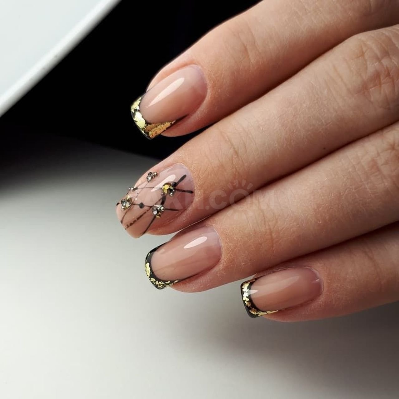 - Маникюр с золотыми полосками