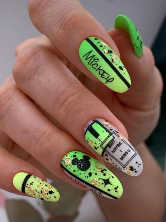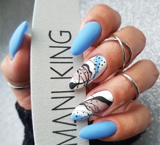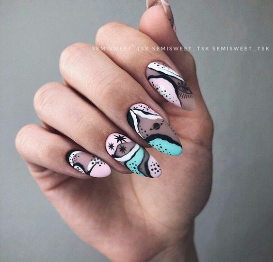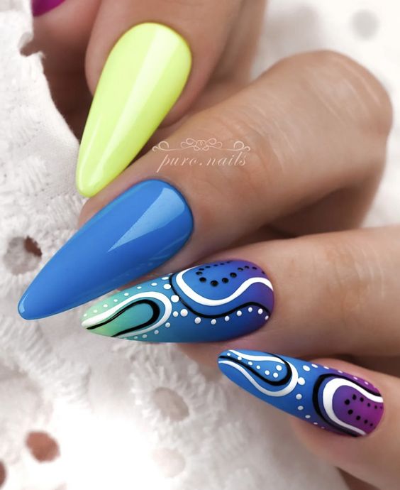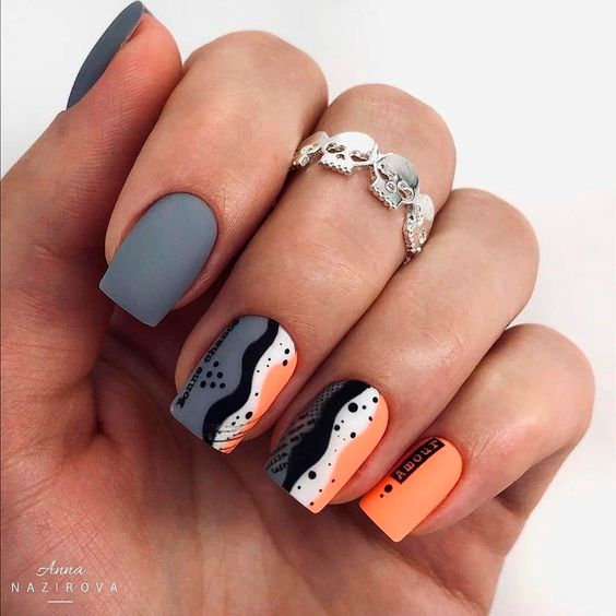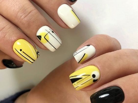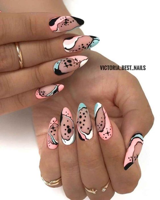 Такой вариант отлично подходит для любой формы и длины ногтей. Кроме того, в абстрактном дизайне можно использовать самые смелые цветовые сочетания.