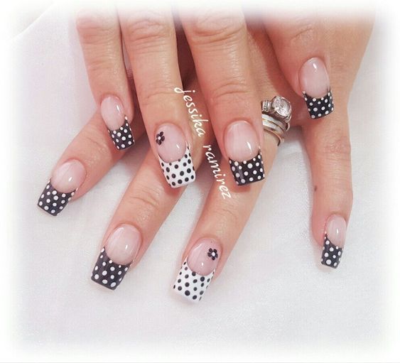 Совет: сочетайте френч с другими видами дизайна и техниками, где используете точки. Так маникюр получится более интересным.
