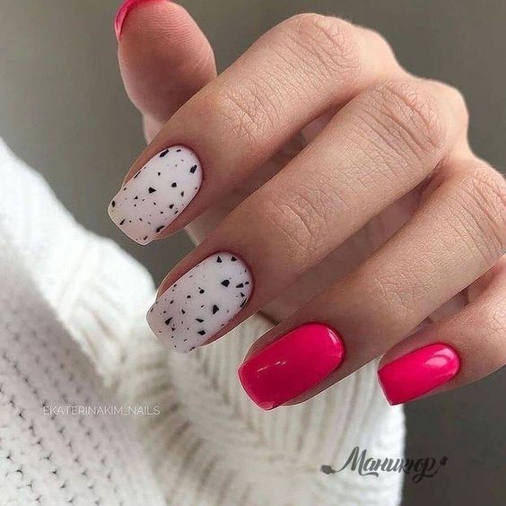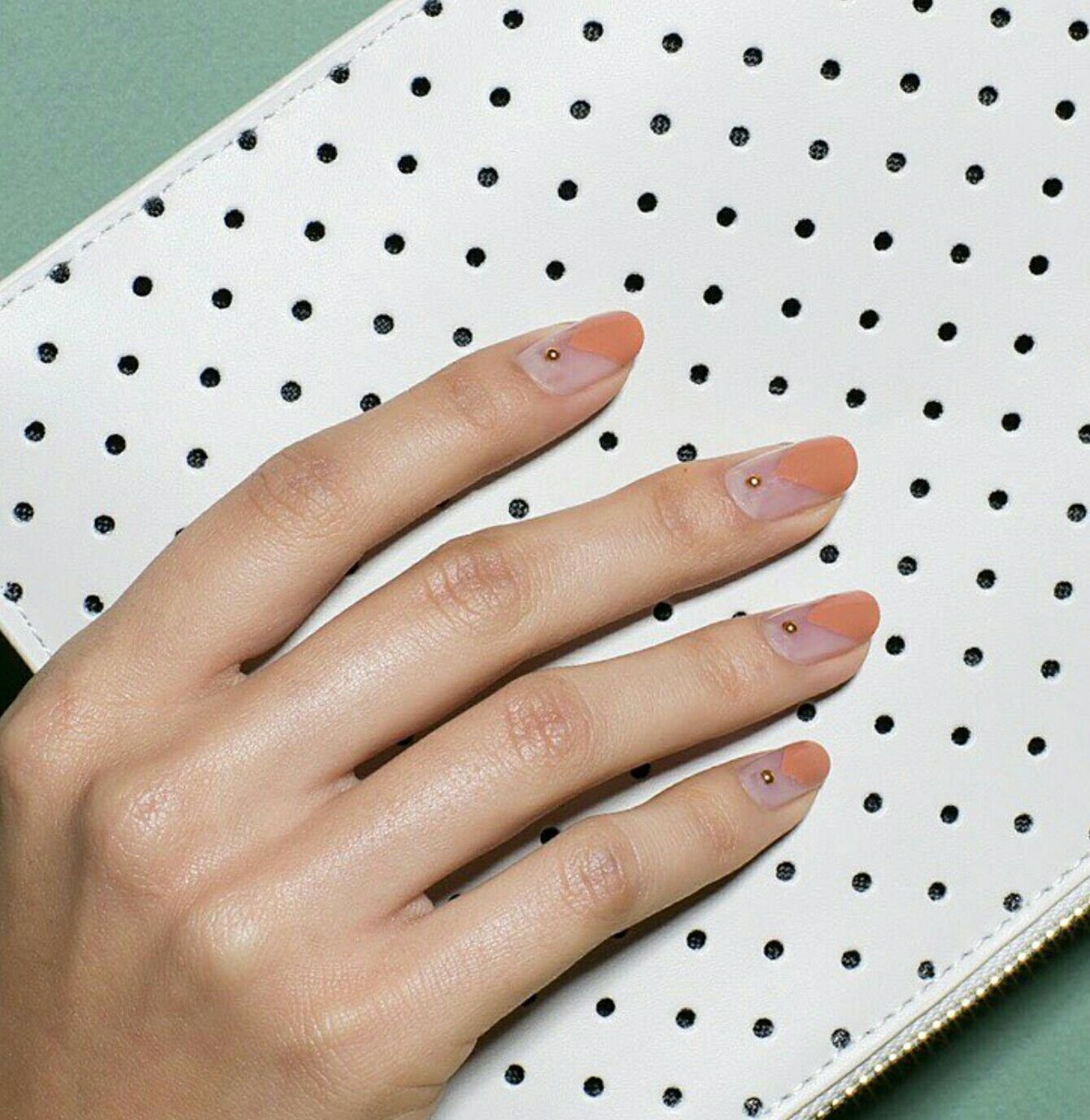 Негативное пространство — очень интересный прием в маникюре, который позволяет создавать стильный и одновременно лаконичный дизайн ногтей. Но кто сказал, что это пространство должно оставаться абсолютно голым? Почему бы не соединить эти две техники и не заполнить голые участки точками. Иногда достаточно всего одной, чтобы сделать модный и интересный акцент.
