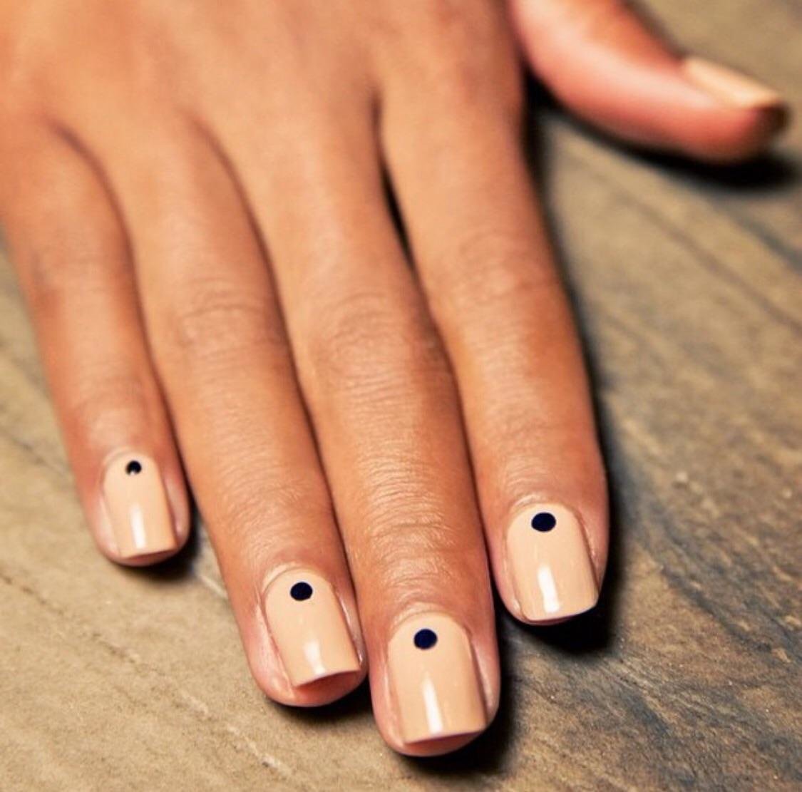 Точечный маникюр это почти синоним слова минимализм в нейл-арте. Конечно, вы можете создать сложный и максимально привлекающий внимание дизайн с точками. Но мы рекомендуем присмотреться к минималистичному стилю. Точки здесь используются как некий акцент, отражающий индивидуальность обладательницы стильного дизайна. Поэтому не стремитесь заполнить как можно больше пространства, просто сделайте небольшой «намек» на дизайн. Уверяем — этого будет достаточно, чтобы он стал заметным и украсил образ.