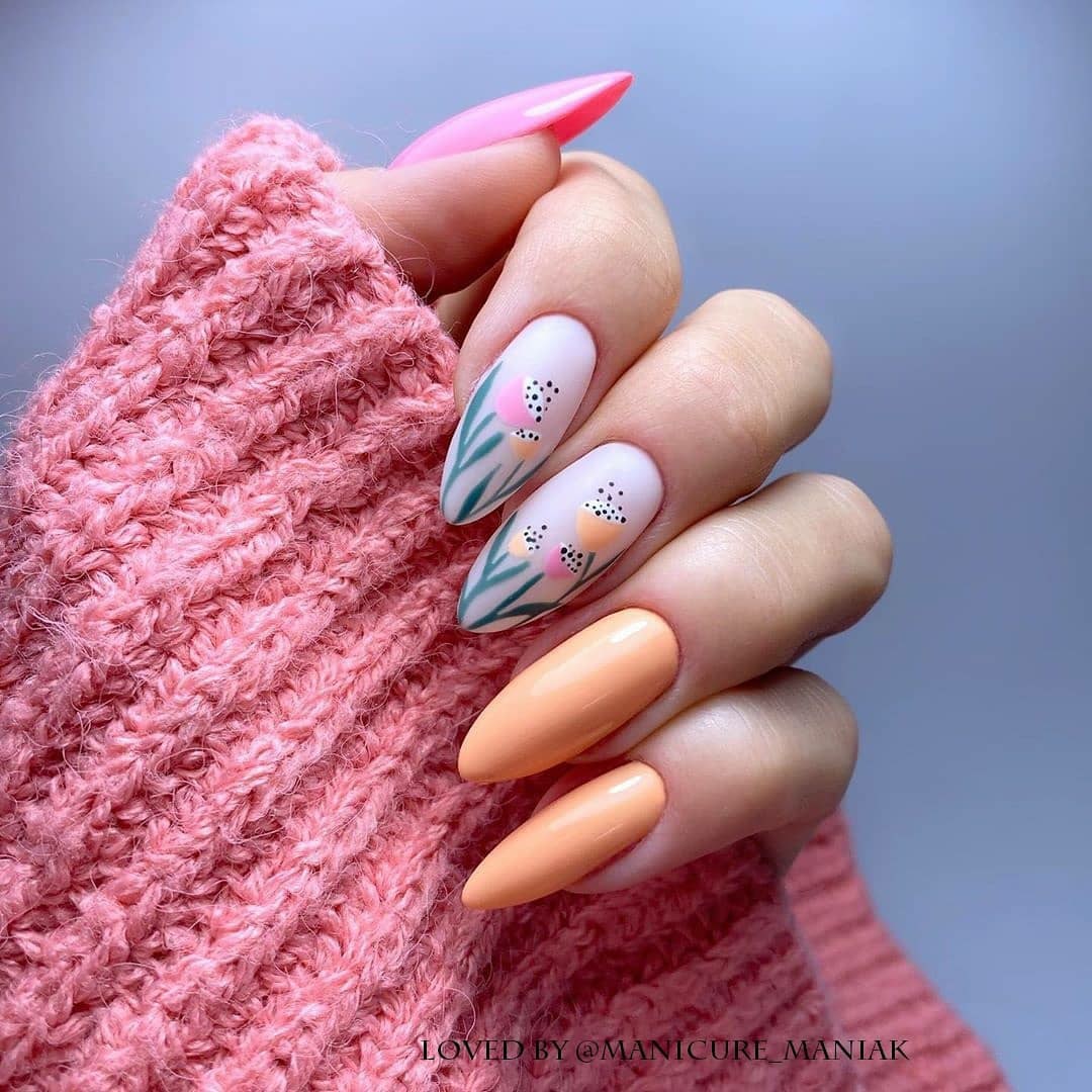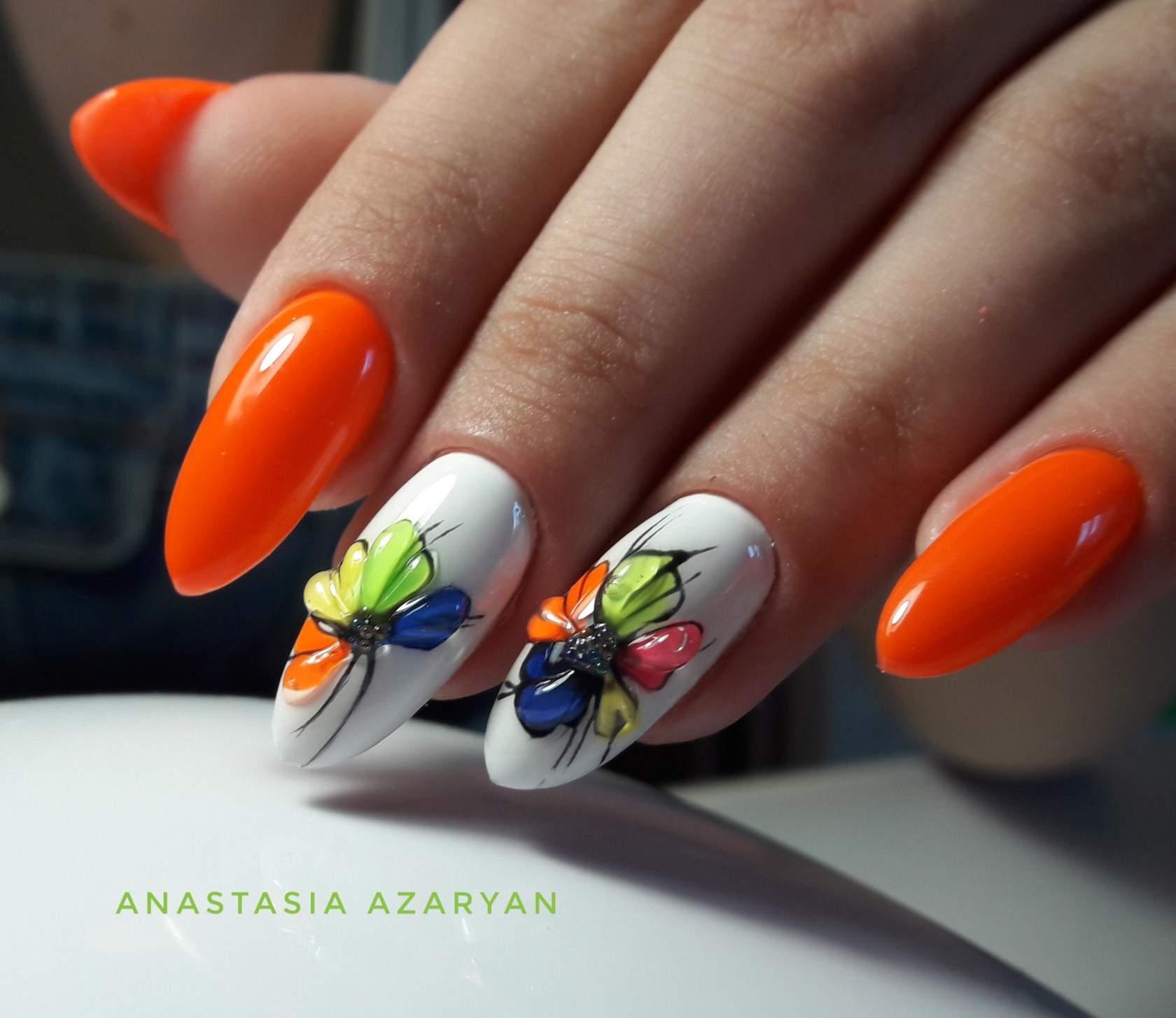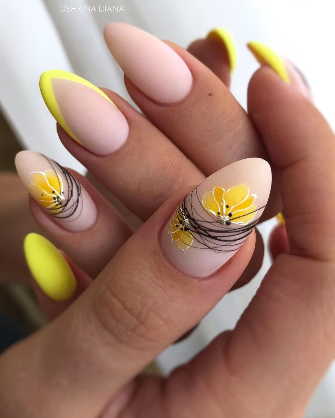 Весна и лето — сезоны, когда хочется максимум цвета и яркости в образе. Это тот период, когда ноготки можно окрасить в желтый или оранжевый и добавить им романтики, нарисовав нежные цветы — пионы, ландыши, тюльпаны и др.