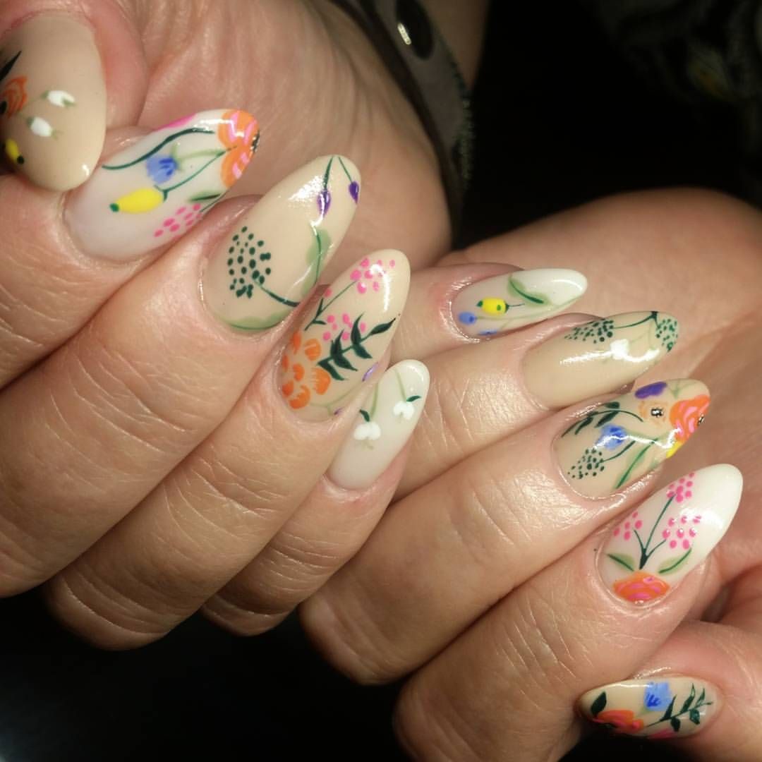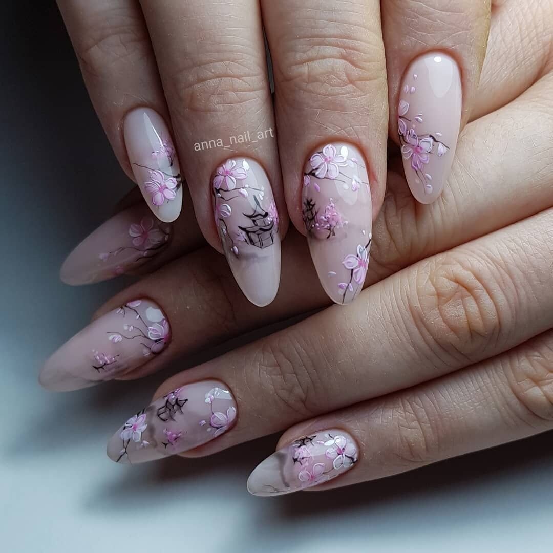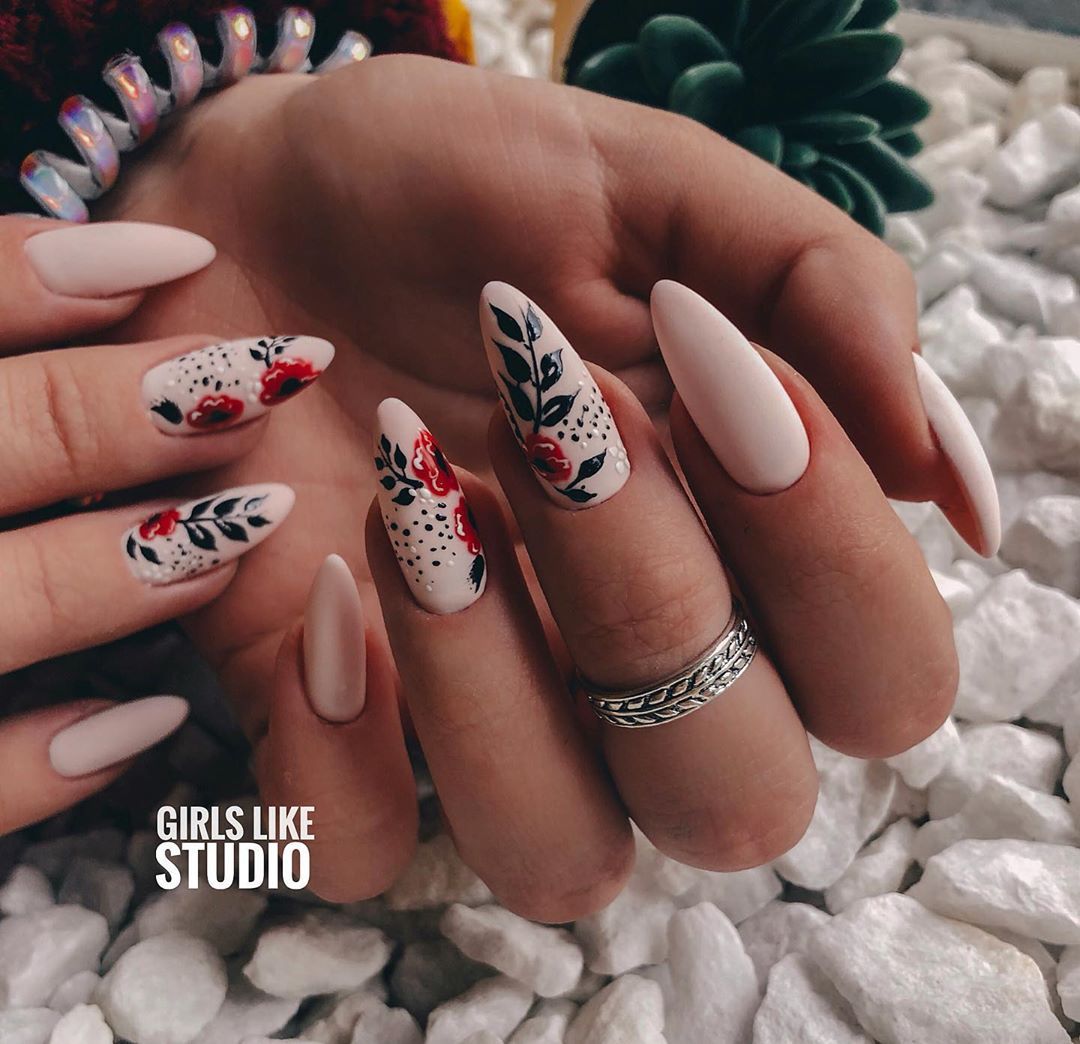 Миндалевидная форма сама по себе говорит о романтичности натуры своей обладательницы. Она отлично уживается со всеми вариантами цветочного дизайна — от нежных рисунков пионов и роз до стильных кактусов с забавными шипами. Выбирайте свой декор под тот образ, который хотите создать — романтика, дерзкий кэжуал или стильный гранж.