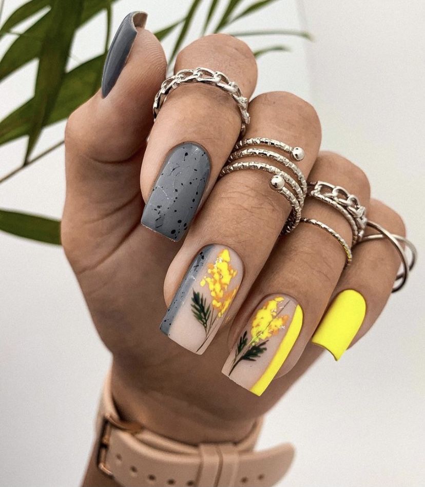 Несмотря на универсальность маникюра с цветами, рекомендуем черпать вдохновение в сезонности. Сама природа подскажет — какие цветы будут актуально смотреться на ваших ноготках. Зимой — это яркие розы, веточки гипсофилы, ирисы, весной — подснежники и нарциссы, тюльпаны, летом — здесь просто буйство красок, а осенью рекомендуем обратить внимание на пионы, хризантемы, гладиолусы и стильные елочки спаржи.