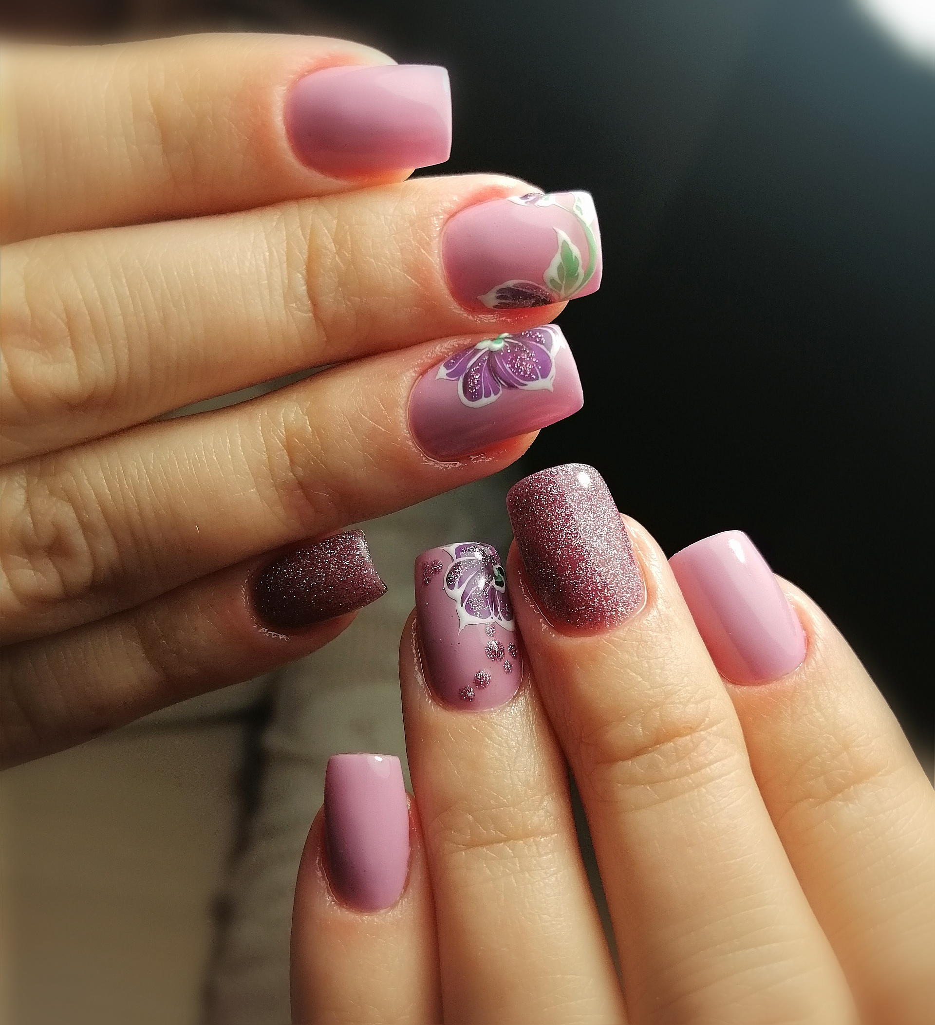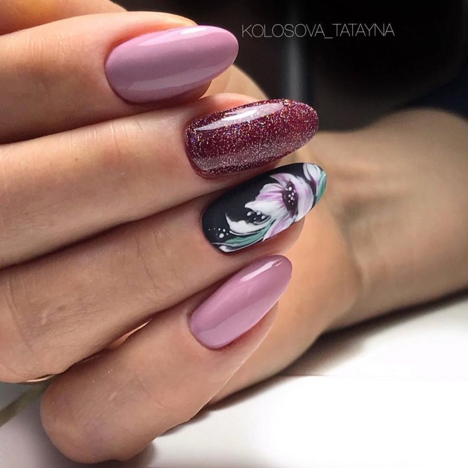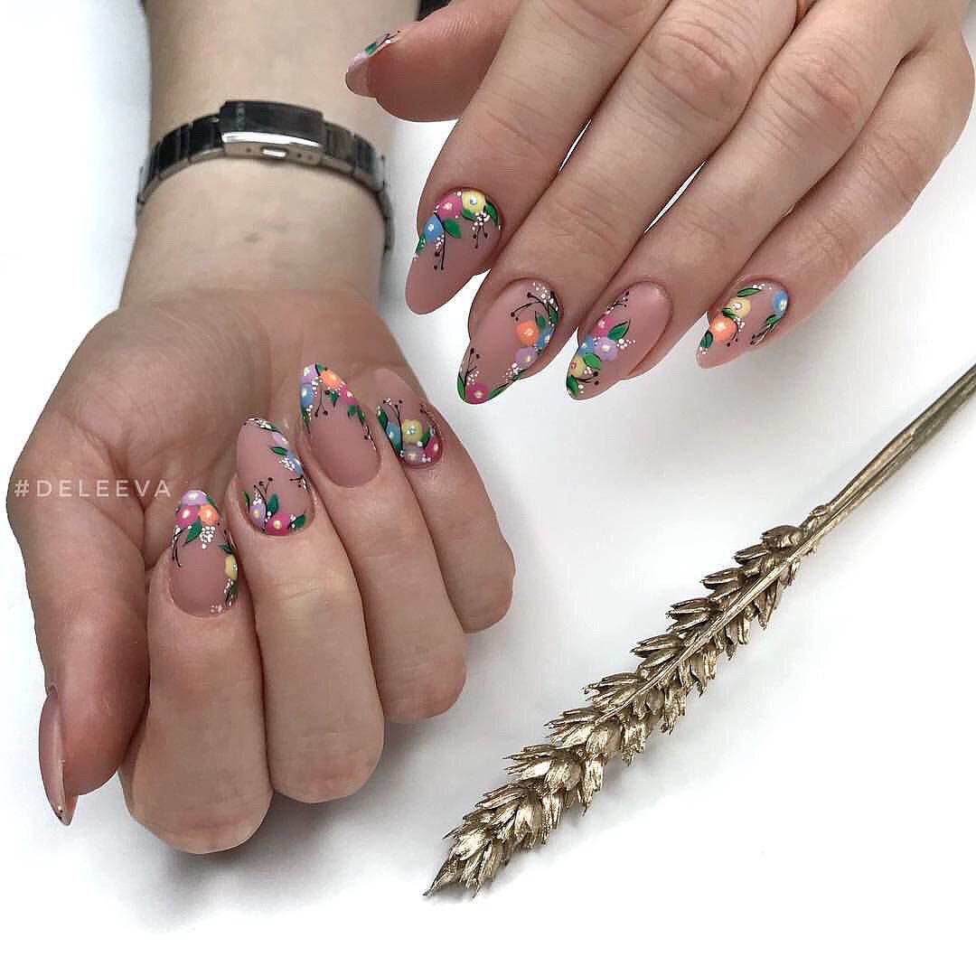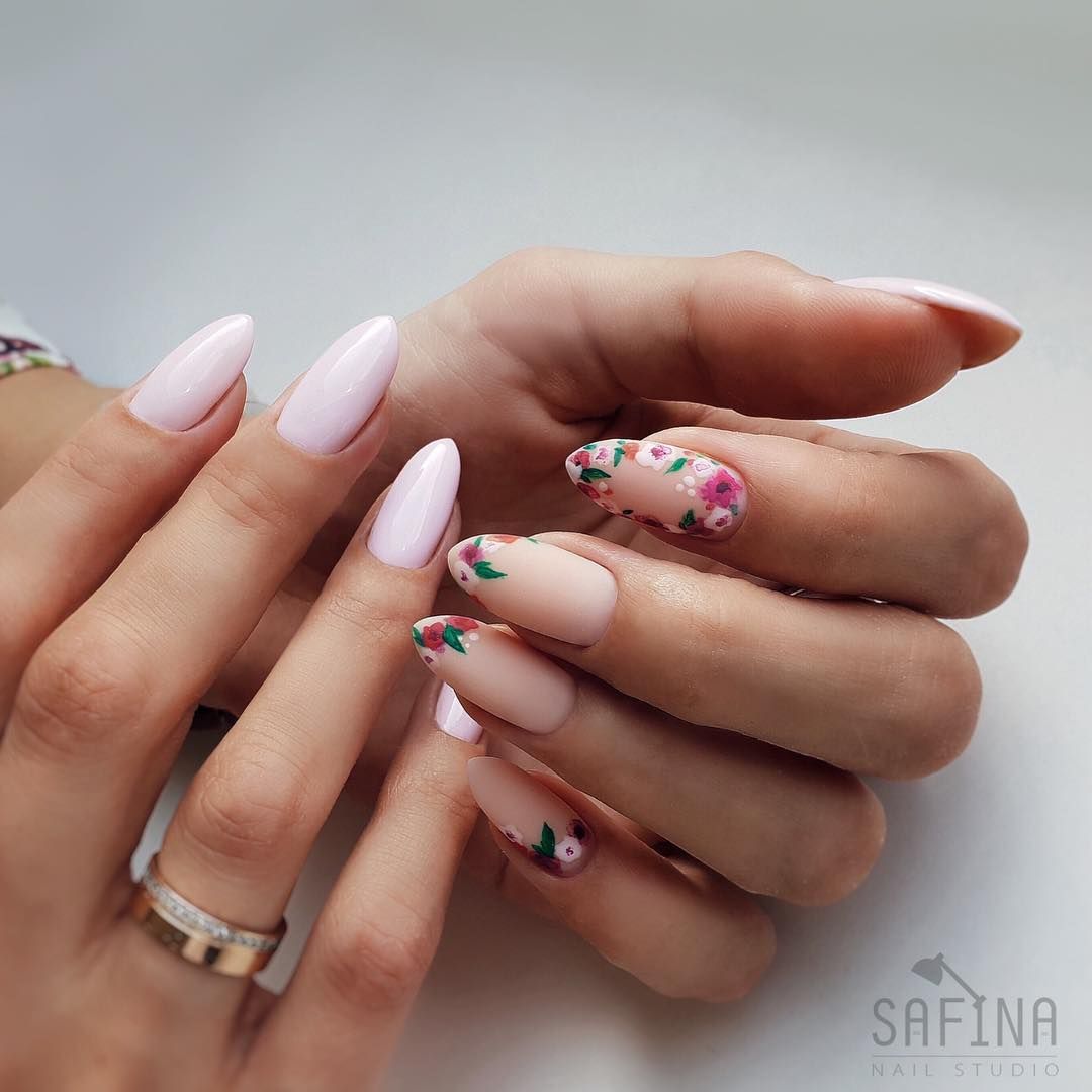 - вариативность. Цветочный маникюр отлично подходит для любой формы и длины ногтей. Переборщить с ним практически невозможно.