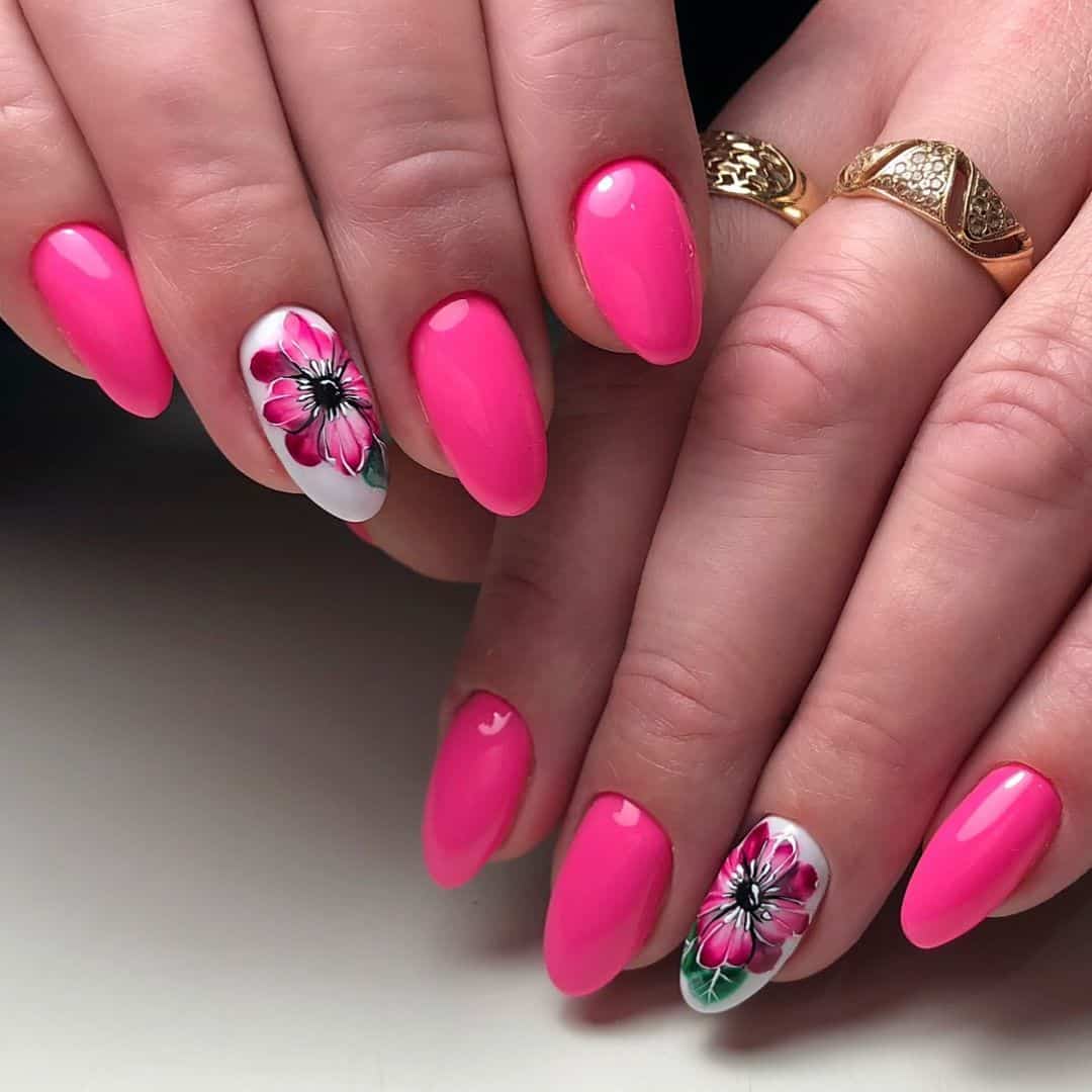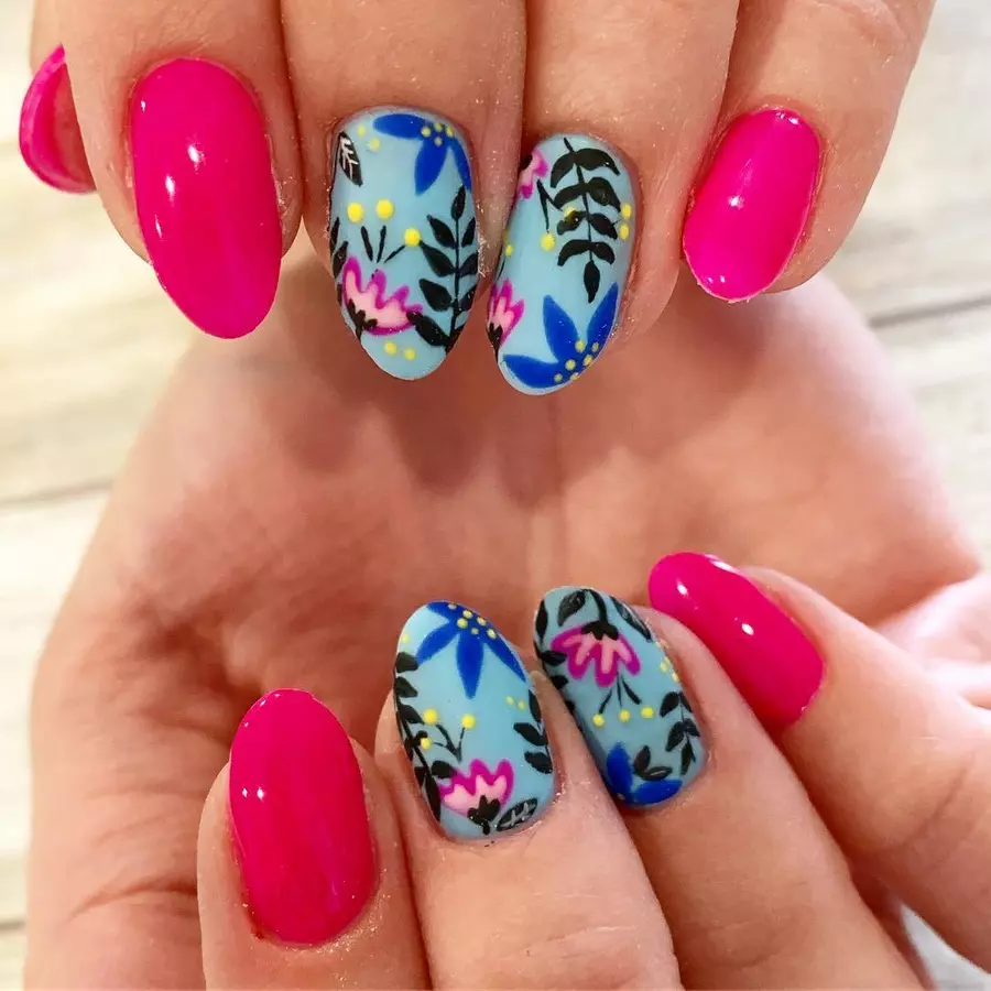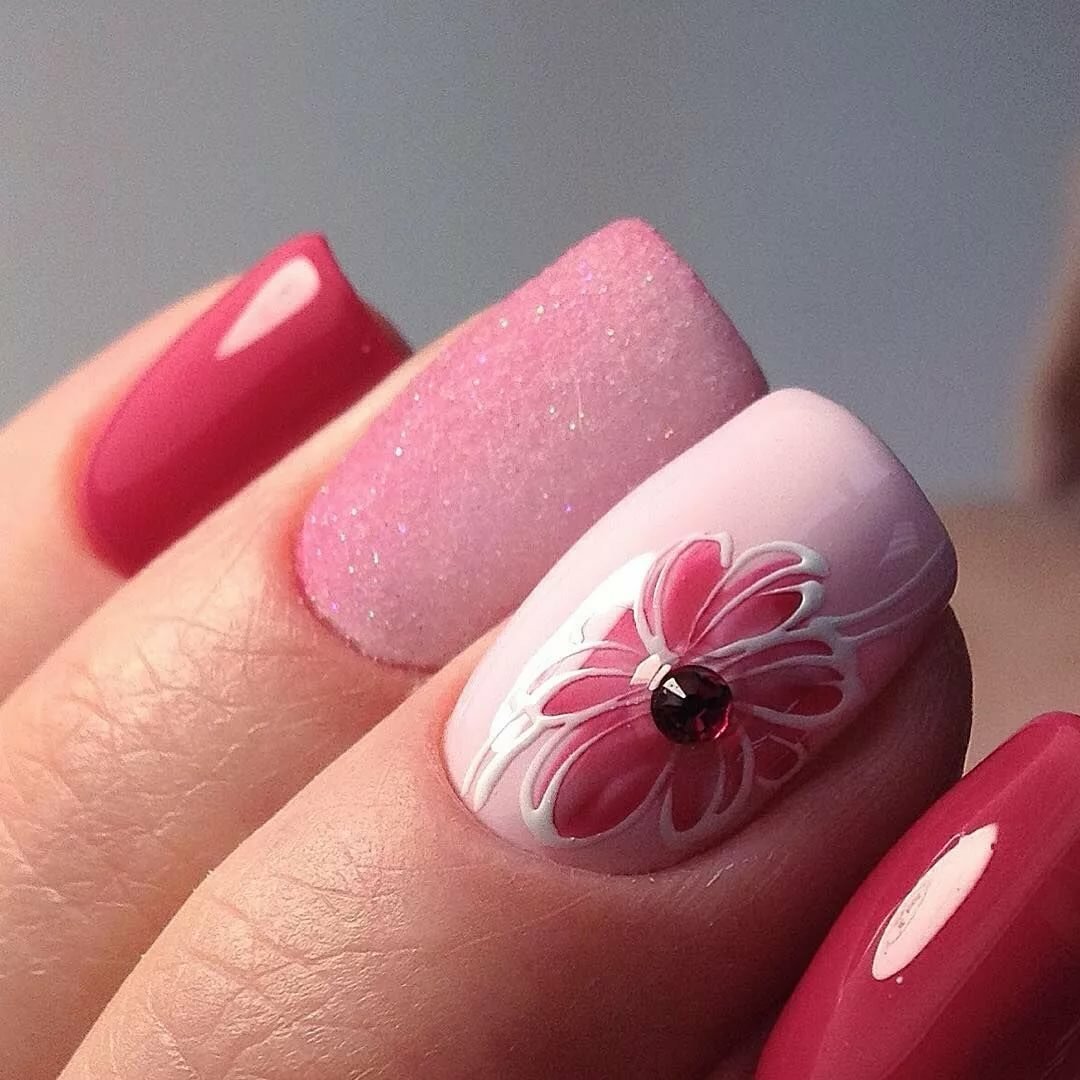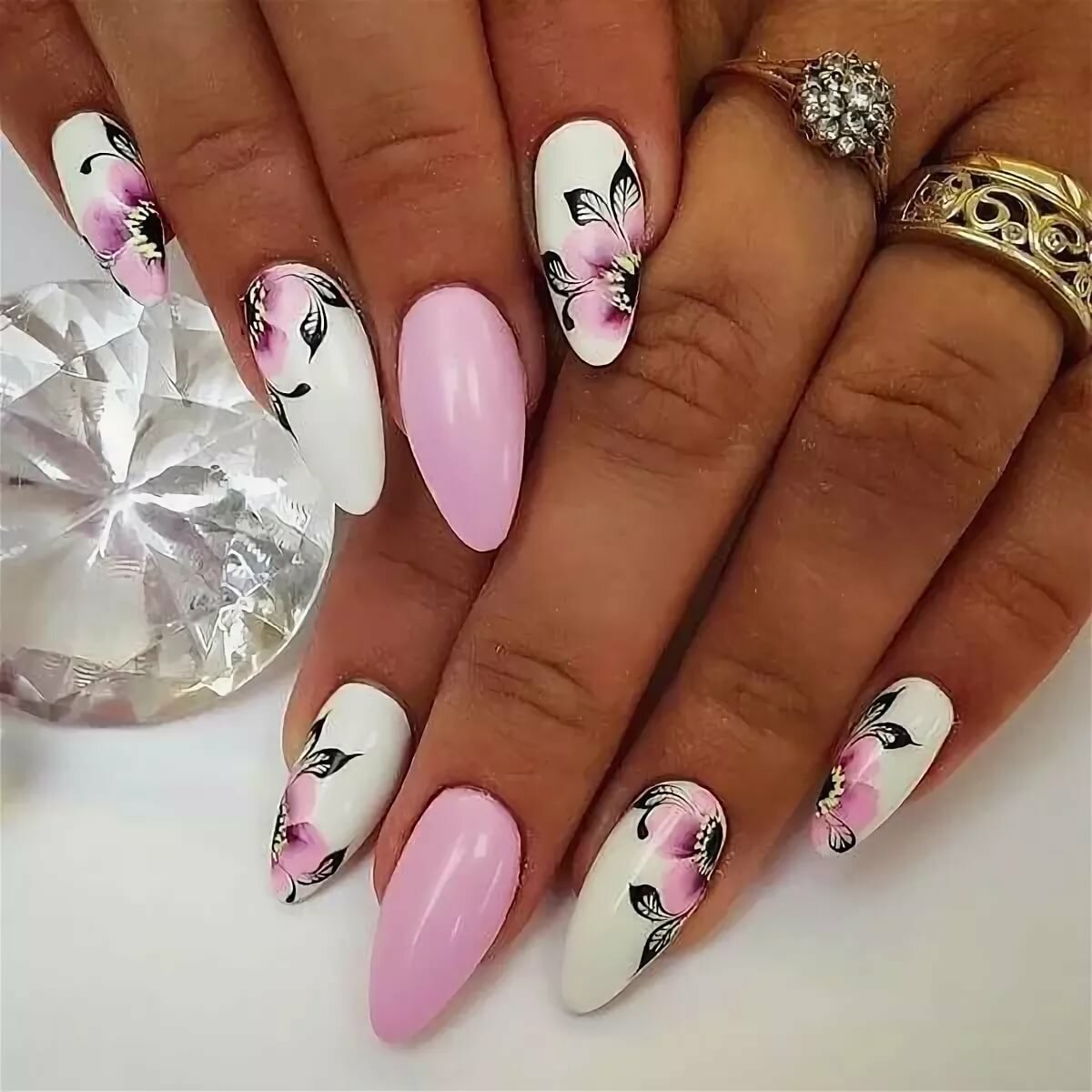 - вариативность. Цветочный маникюр отлично подходит для любой формы и длины ногтей. Переборщить с ним практически невозможно.