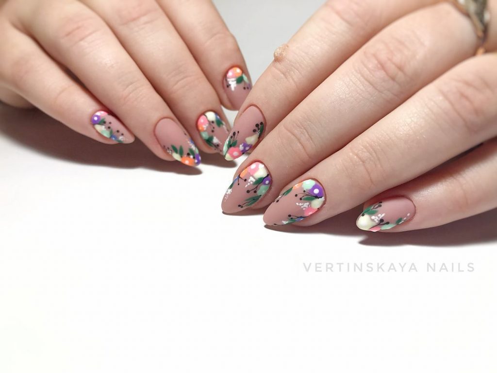 Совет: важно учесть, что в этом сезоне основным трендом является естественность во всем. При создании цветочного маникюра обратите особое внимание на сочетание цветов. Лучше, если вы повторите природные миксы оттенков. Так маникюр не будет вычурным и неестественным. Современная нейл-индустрия позволяет подобрать максимально близкие к природным сочетаниям оттенки.