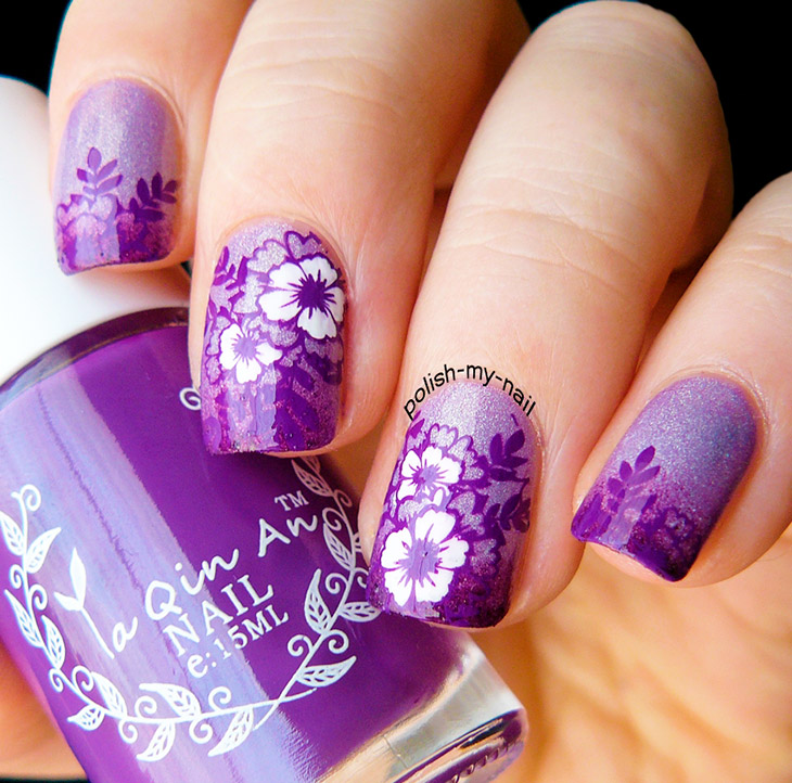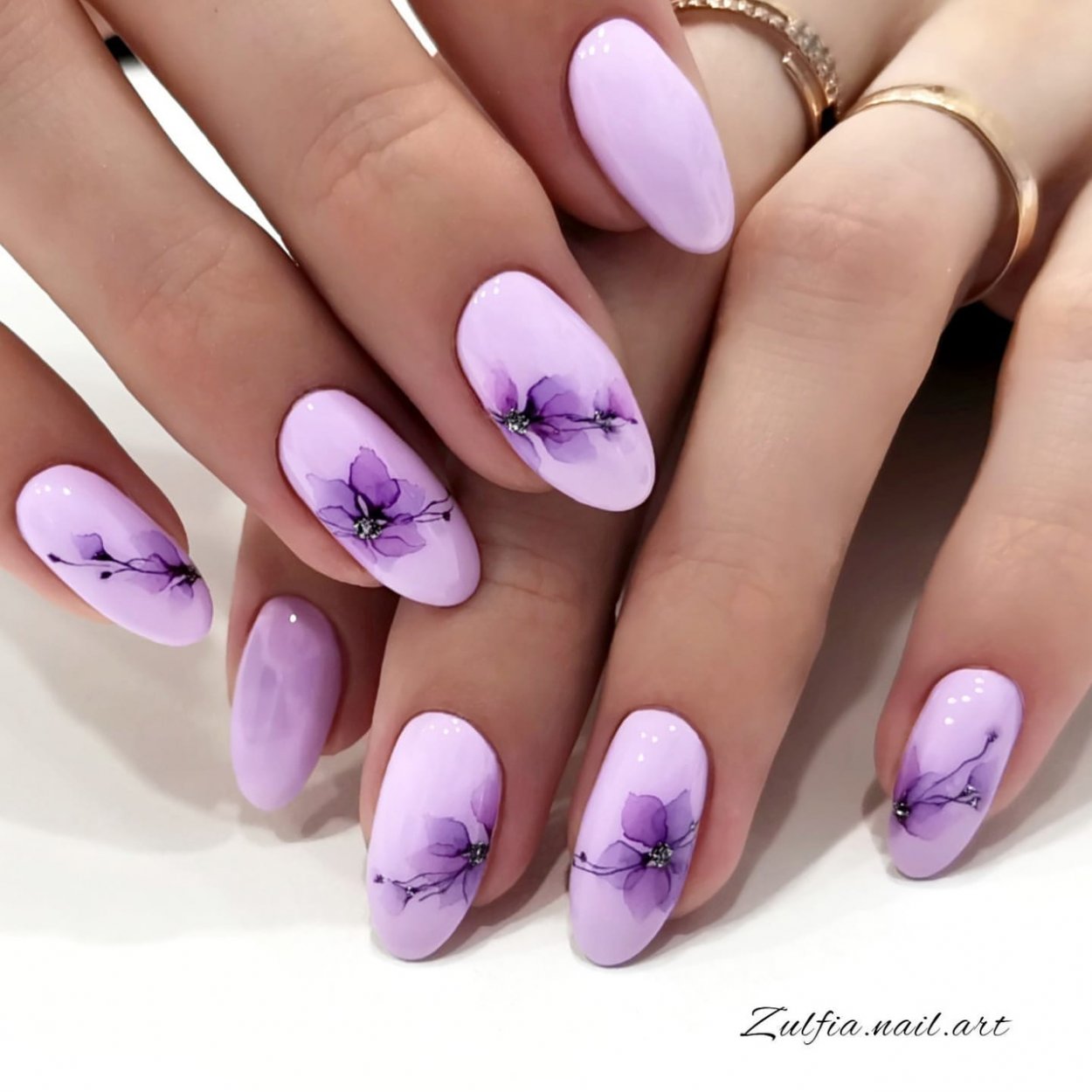 Это очень интересный вариант цветочного дизайна. Мастер создает на ногтях размытые силуэты цветов. Рисунок получается полупрозрачным и очень нежным. От мастера потребуется особое мастерство и умение.
