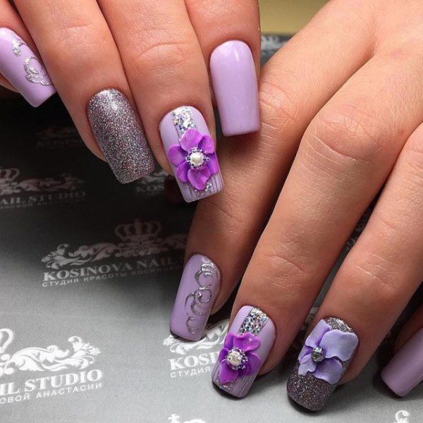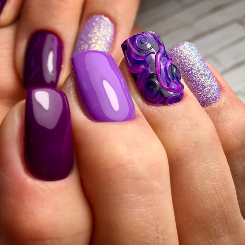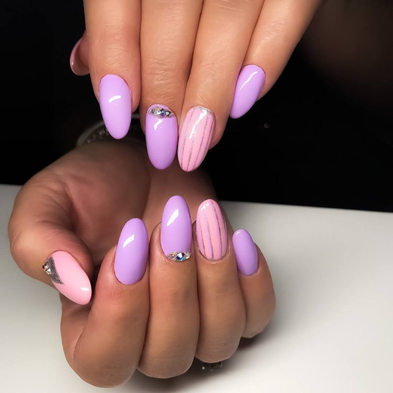 Совет: попробуйте сделать маникюр в стиле разные руки. Каждый ноготок можно окрасить в один из основных тонов сиреневой палитры.