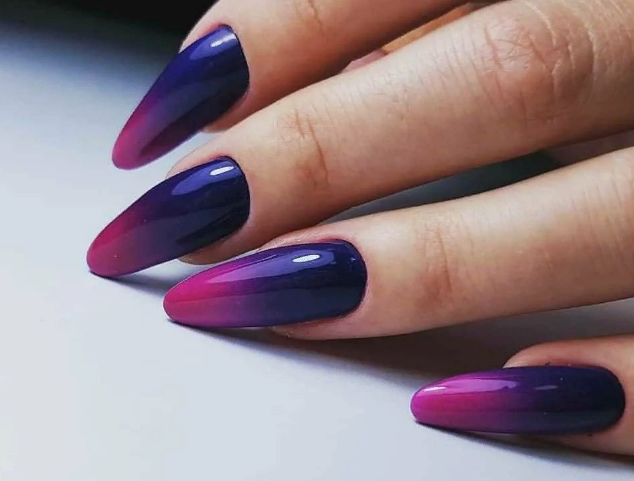 Омбре — техника маникюра, при которой цвет растягивается, создавая эффектный дизайн. Вариант градиент может быть любым — от более светлого тона к темному или наоборот, вертикальный или привычный горизонтальный.