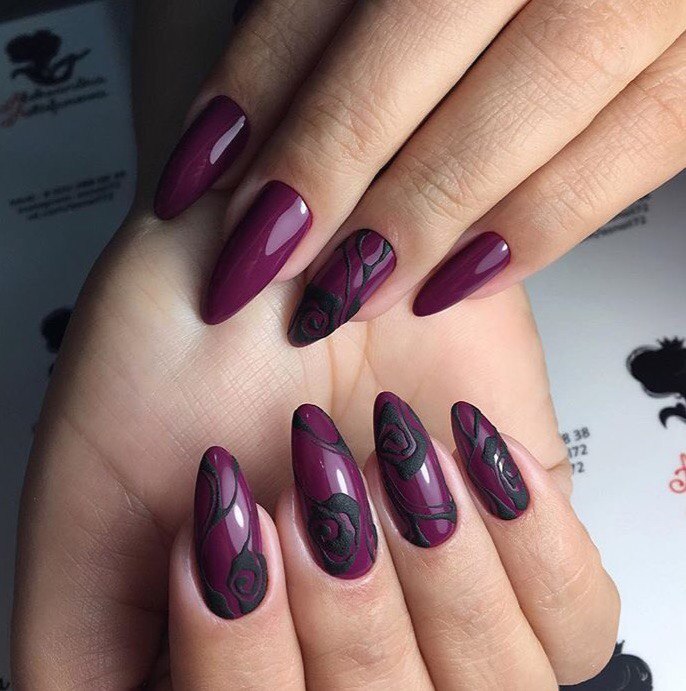 Сливовый маникюр подойдет как для офиса, так и для торжественных случаев. В последнем варианте его лучше дополнить ярким дизайном.