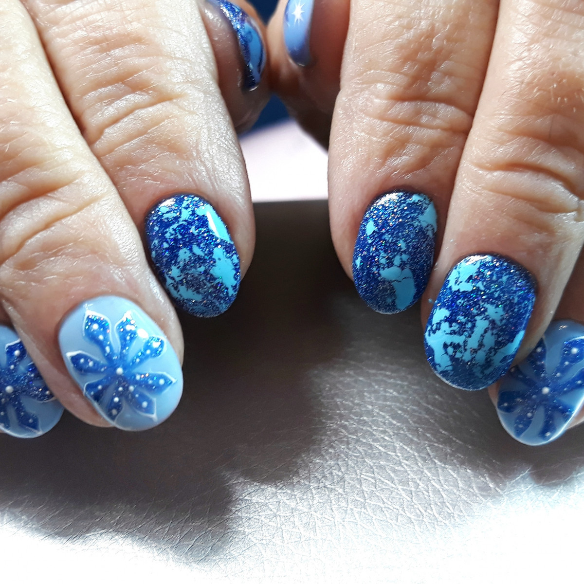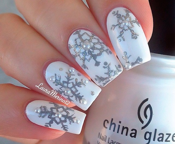 - все ноготки покрыты тонкой вязь. снежинок, словно кружевом;