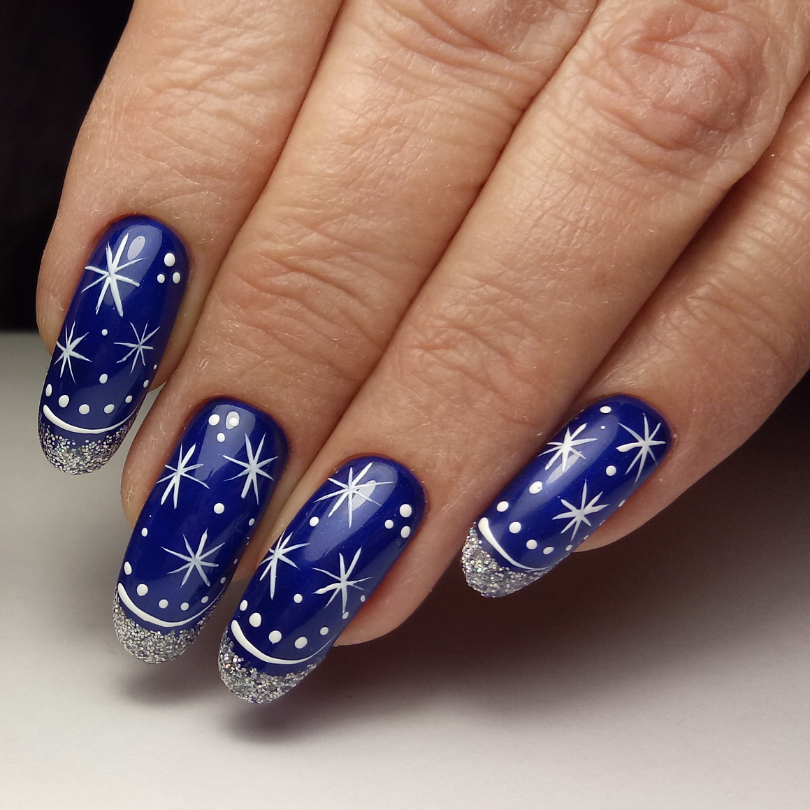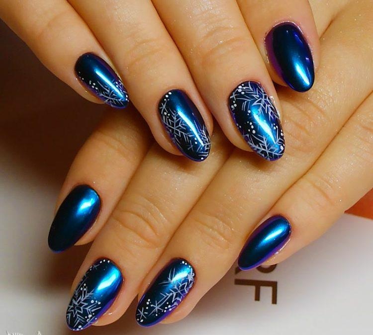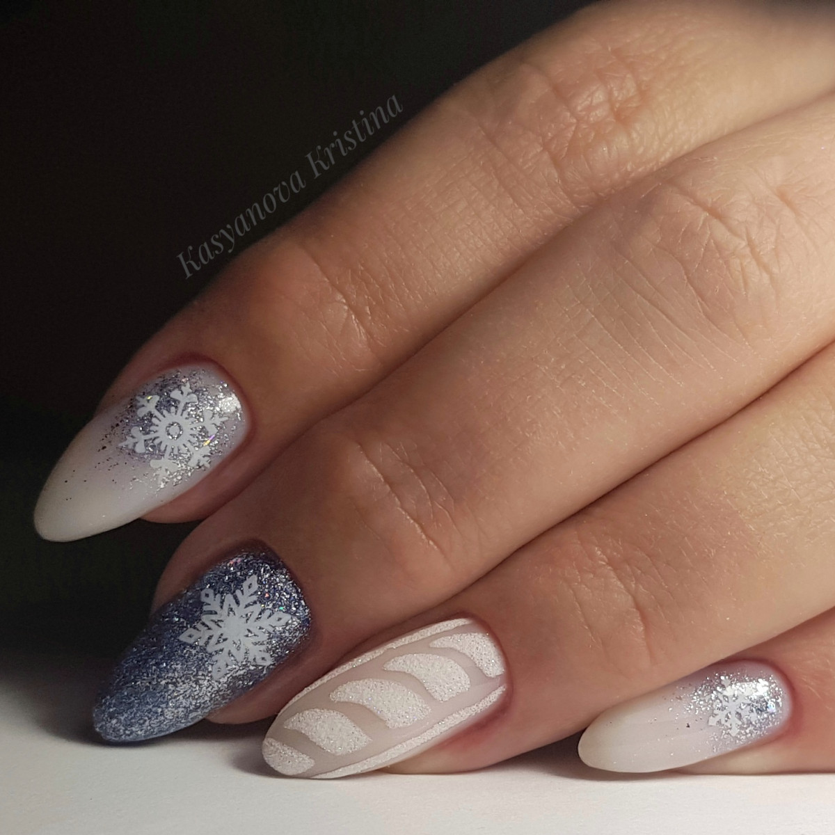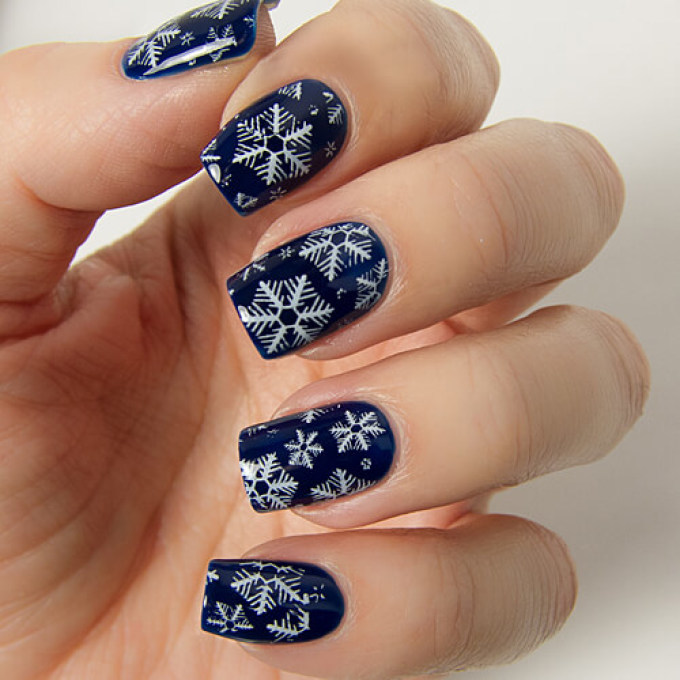 Какую длину ногтей выбрать для маникюра со снежинкой? Подойдет любая, к которой вы привыкли в обычной жизни. Естественно, что определенная длина несколько ограничивает вариативность дизайна со снежинками.