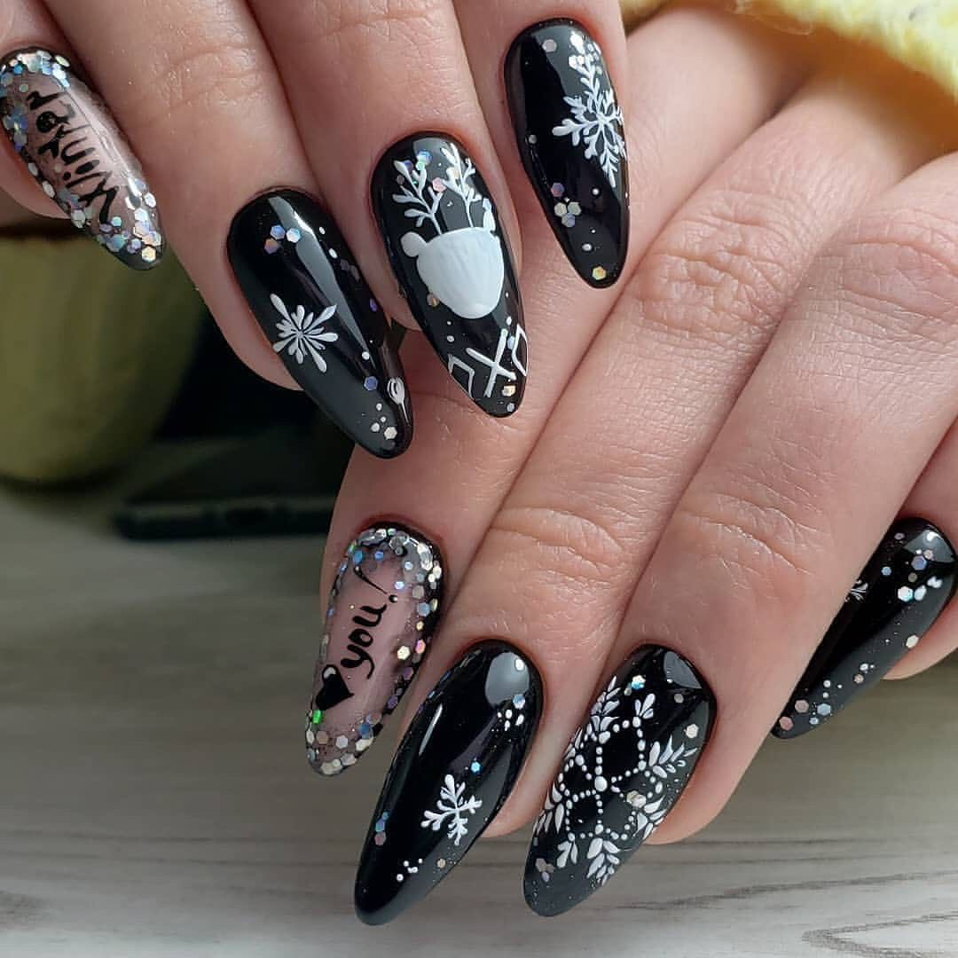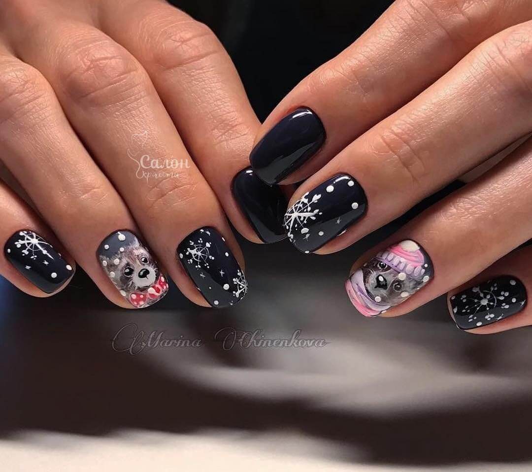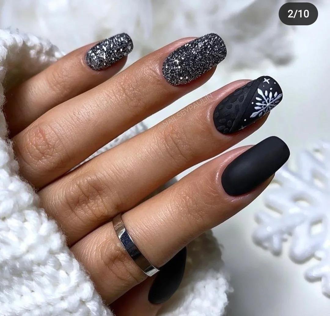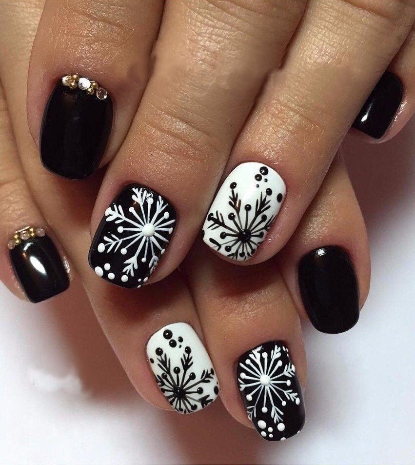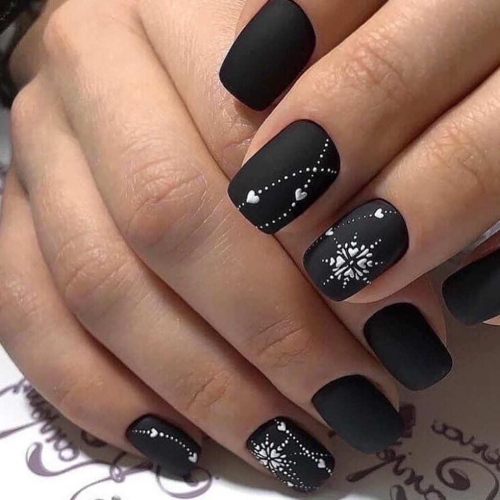 Разве можно представить модный маникюр без черного лака? Хотя еще совсем недавно у такого оттенка было очень много противников. Сейчас черные ноготки — глянцевые и матовые — это модно и актуально. Достаточно небольшого акцента в виде снежинки, чтобы маникюр стал модным и стильным.