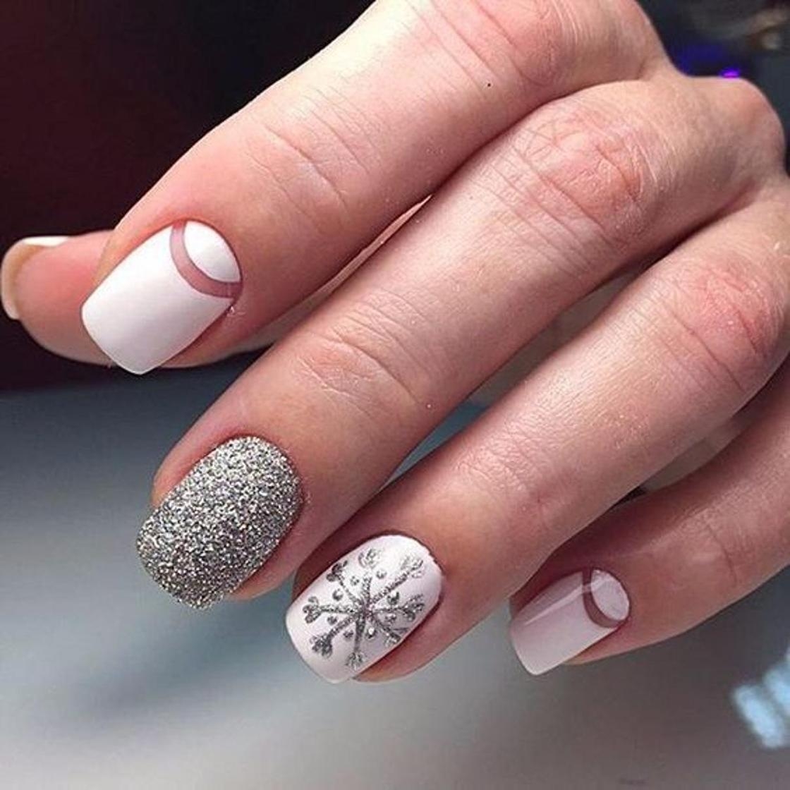 Чем короче пластина, тем более мелкие детали стоит использовать. ИЛИ, наоборот, ноготь можно украсить достаточно крупной снежинкой с блестящим акцентом. Но тогда она должна быть единственной на пластине. И не стоит оформлять в таком стиле все пальчики при короткой длине. Такой маникюр будет выглядеть слишком простым и незатейливым.