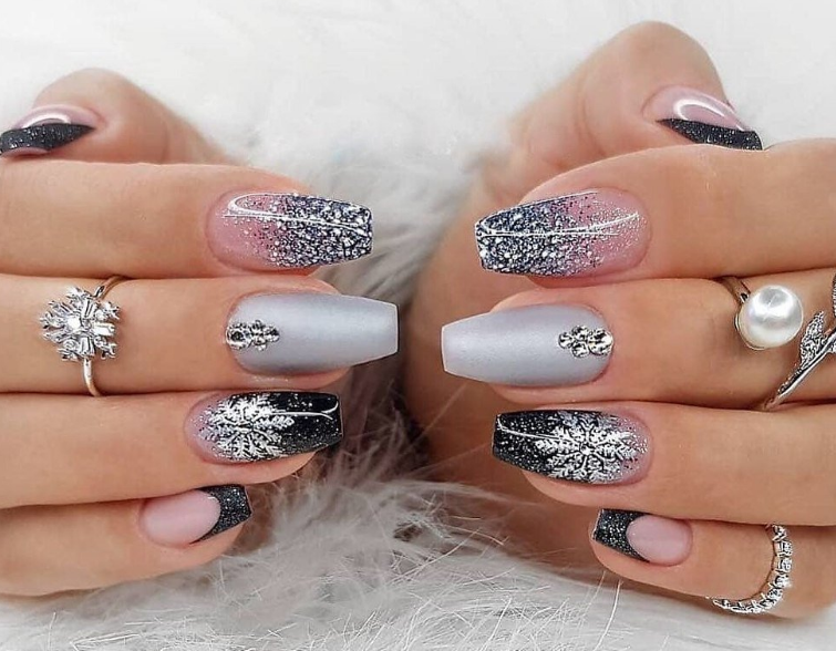 Современный нейл арт предлагает такое разнообразие дизайнов и техник, что выбрать что-то конкретное бывает порой очень непросто. Конечно, есть ряд дизайнов, с которыми снежинки смотрятся особенно удачно и стильно.