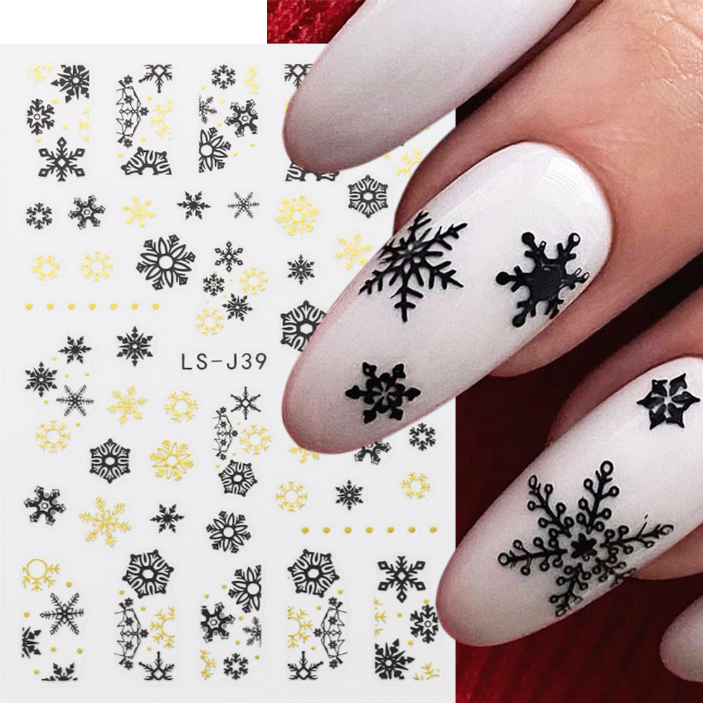 Вы новичок в маникюре и рисование — это не ваше? Для вас еще один вариант декора — наклейки. Это самый простой и доступный способ сделать дизайн со снежинкой. Наклейки могут быть с клейкой основой или водяные. Работать новичку проще с липкими.