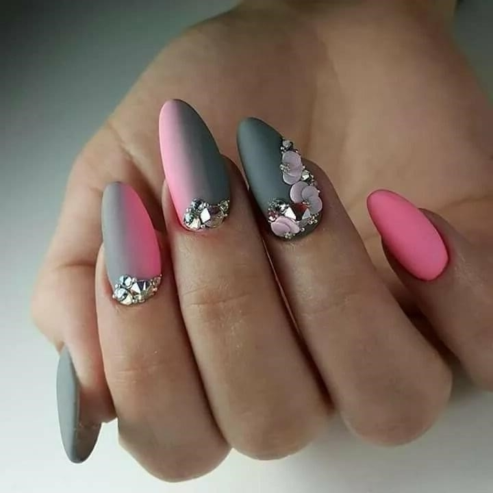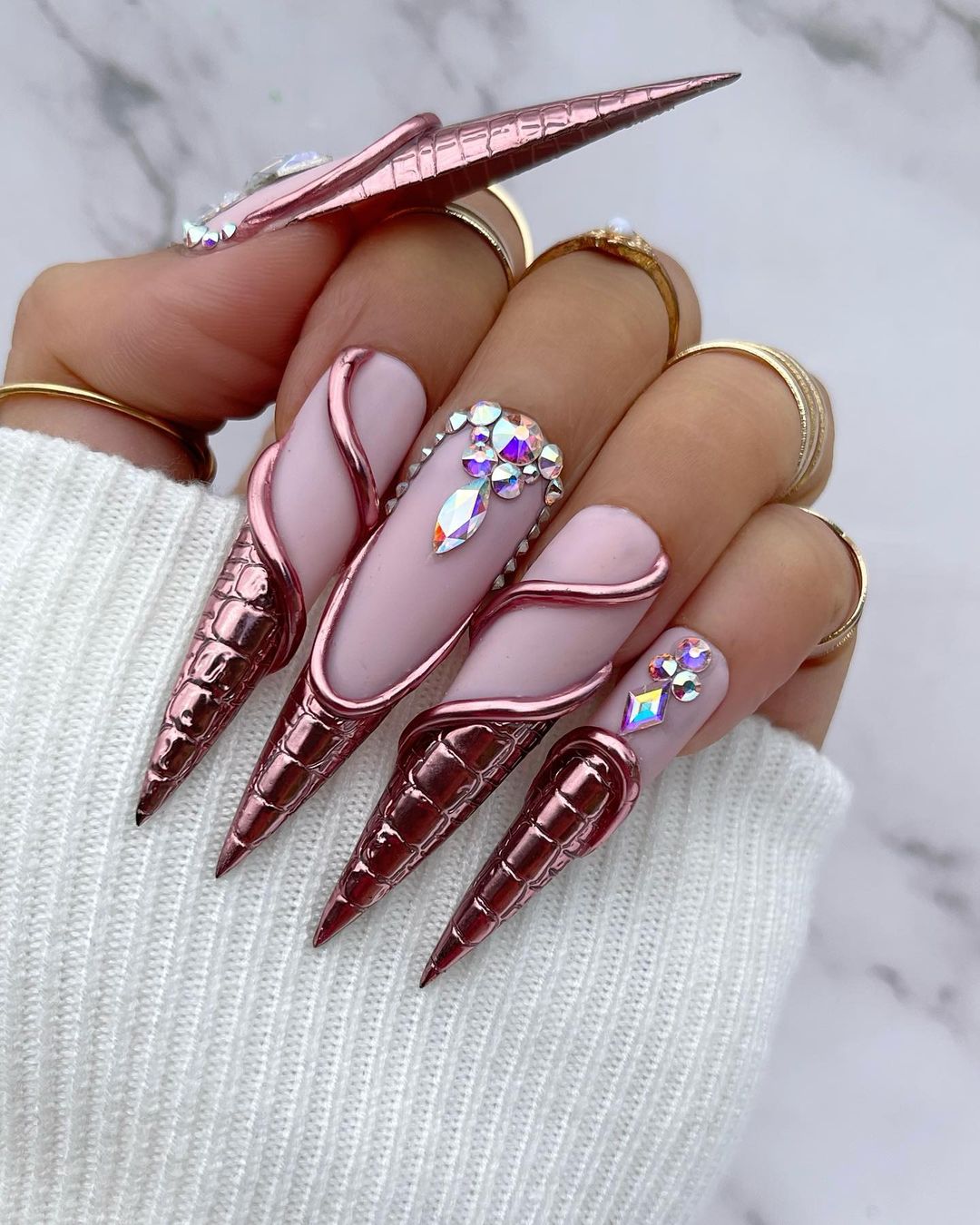 В этом сезоне актуальны все оттенки розовой палитры. Тем более, что Институт цвета Пантон выделил именно розовый оттенок года — Viva Magenta. Это сочный малиново-красный оттенок, который подходит к любому сезону. Стразы на такой базе будут смотреться особенно эффектно и стильно.