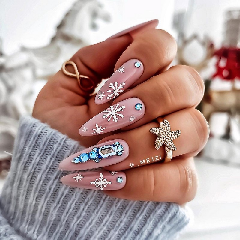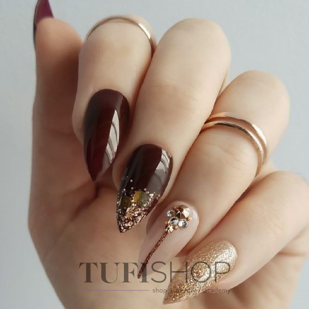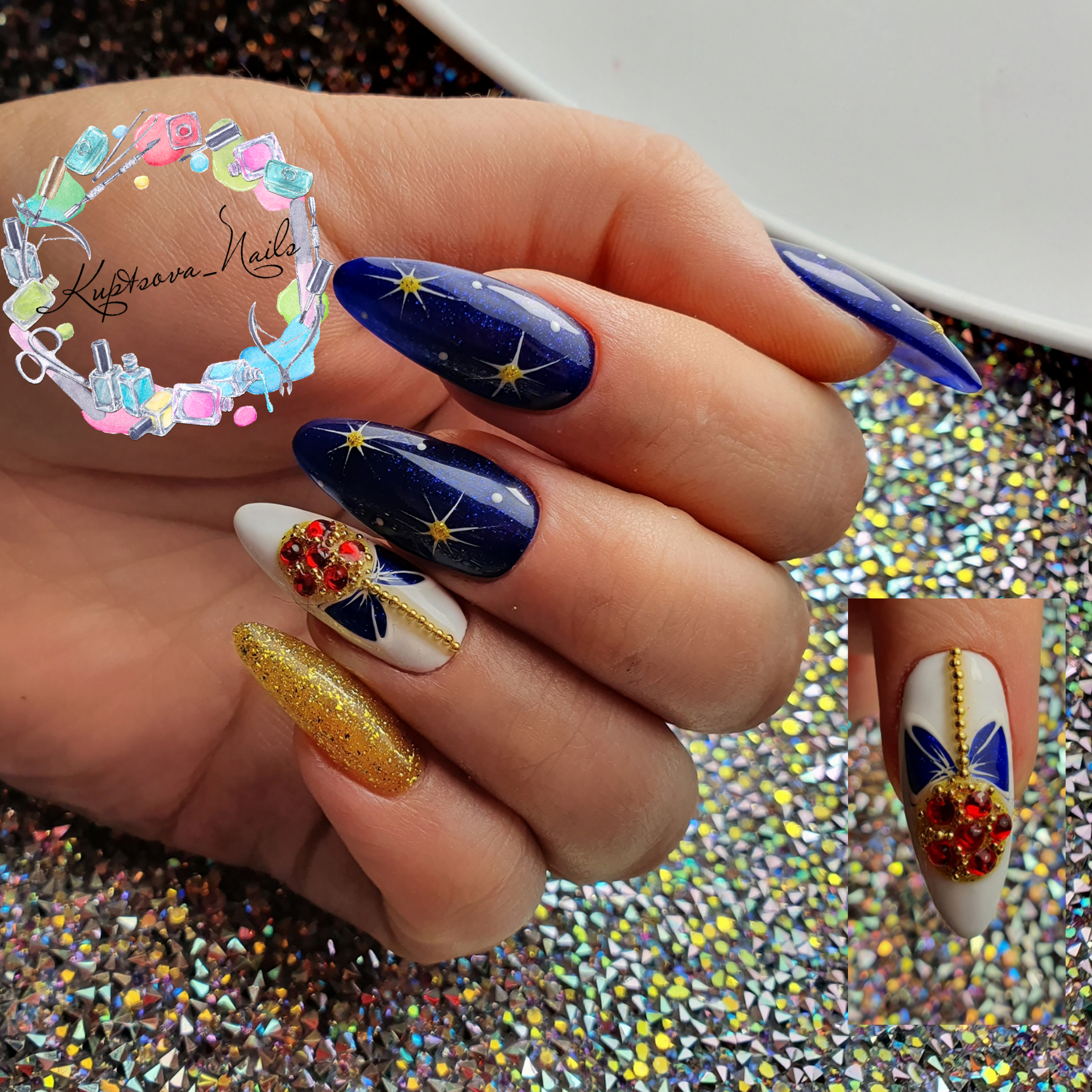 Совет: клей для маникюра недорогого сегмента из масс-маркета не справится с задачей и камни не продержаться долго. Если вы планируете праздничный дизайн, который должен продержаться как можно дольше, лучше сделать салонный маникюр.