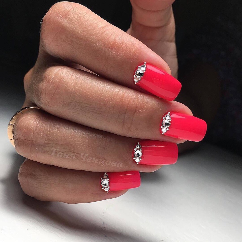Довольно популярная форма ногтей среди модниц. Для квадрата подходят все формы страз — от классики до новинок. Вы можете выбрать камни с квадратной подложкой, они стильно подчеркнут актуальную форму. Но, конечно, придется учесть длины квадратных ноготков, чтобы не переборщить с ярким дизайном и не нанести вреда пластине.