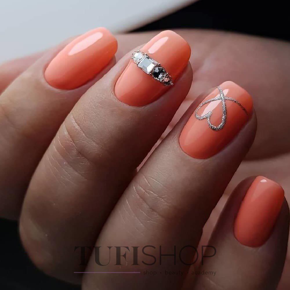 Здесь, конечно, можно выбрать более активный вариант дизайна. Но обратите внимание на расположение камней на ногте — чем крупнее камень, тем дальше он должен располагаться от края пластины. Дело в том, что камни создают давление на ноготь и он может треснуть или отломиться. Кроме того, именно краешком пластины мы чаще всего цепляем за разные предметы.