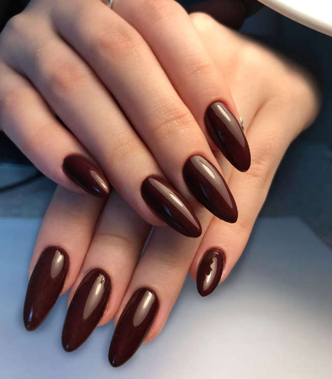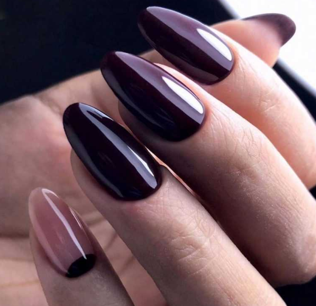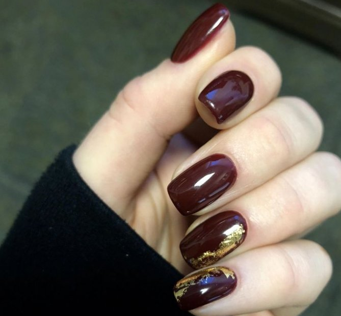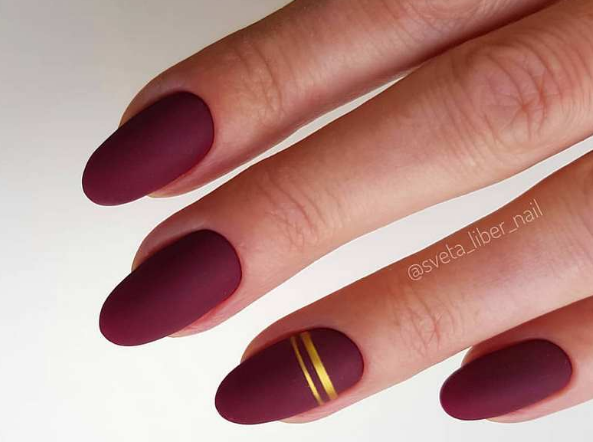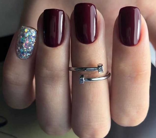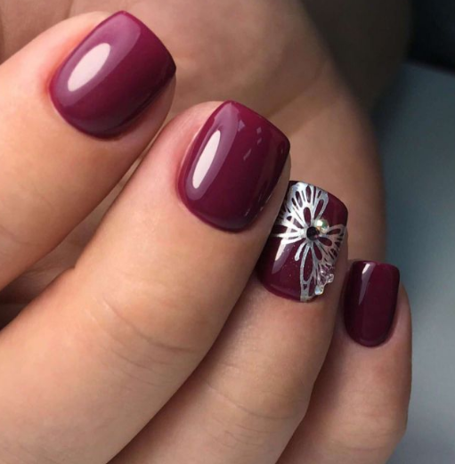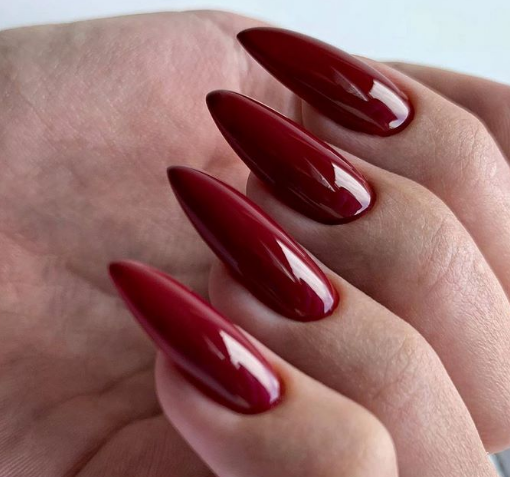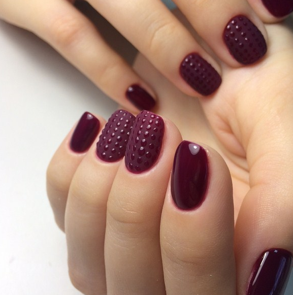 Бордовый подойдет для любой длины и формы ногтей. Кроме того, он станет прекрасной базой для любого дизайна.