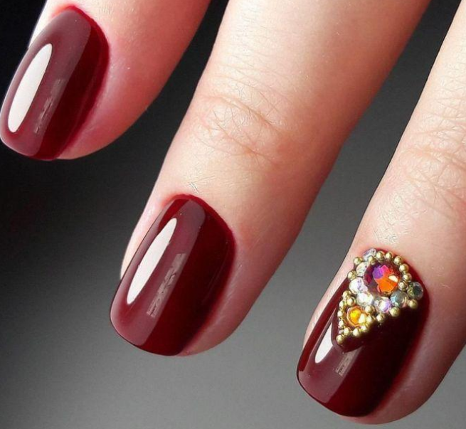 Современная индустрия нейл-арта предлагает обилие дизайнов ногтей. В выборе очень просто потеряться. Опытный мастер всегда посоветует подходящий декор маникюра в зависимости от длины, формы ногтей, общего стиля в одежде и предпочтений клиентки. Конечно, вы можете самостоятельно выбрать маникюр, который кажется привлекательным. Расскажем о вариантах декора, которые советуют выбирать мастера для маникюра в бордовых тонах.