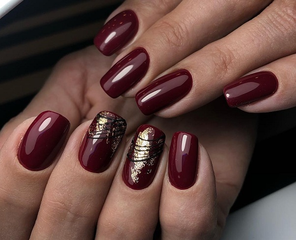 Бордовый цвет — основной в осенней палитре. Это глубокий сильный оттенок. Особенно эффектно смотрится его сочетание с золотом. Обычное глянцевое или матовое покрытие уже способно сделать маникюр эффектным и привлекательным. Он подойдет к любому наряду, сочетается с большинством цветов основной палитры. Но это не значит, что нужно забыть о дизайне — новый сезон предлагает самые разные варианты нейл-арта. Расскажем обо всем подробнее в этой статье.